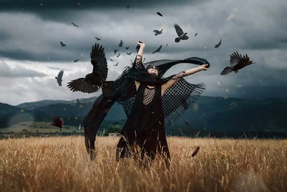 Next is Morrigan, the phantom queen, who is mainly associated with foretelling doom, death or victory in battle. She often appears as a crow. [Model: Ana-Maria Minciuna / Assistant: Nicoleta Gheorghiu]