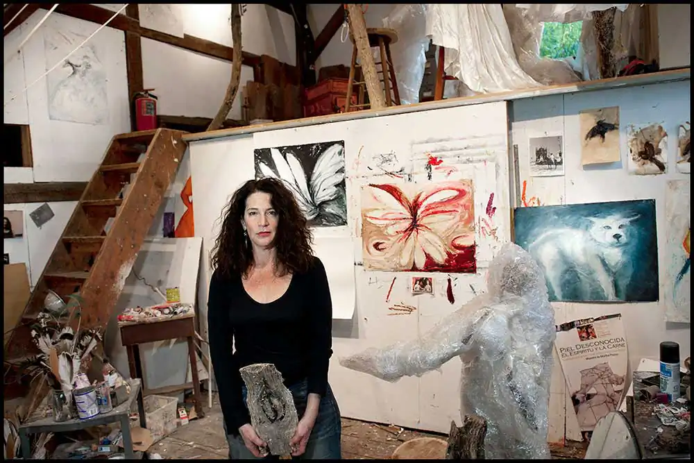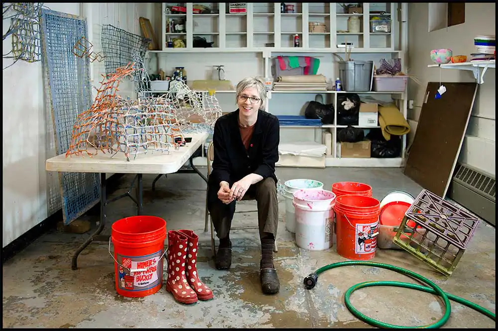 I made several stipulations to help me in my quest for subjects. The first was geographic – the artists had to be in the confines of the Leigh Valley. The other, was that they had to have a studio in which they worked – a barn, a garage, a section of the house – whatever space they deemed suitable and exclusively used to create their work. It was a wonderful project to undertake. I explored the Leigh Valley and discovered a vibrant community of artists. Unlike the celebrities that I had photographed in my studio in Los Angeles, I was the welcome guest in the artist’s studios. The diversity of the artwork – glass-works, fiber and fabric, ceramics, photography, sculpture, painting and paper making were all represented…as were ages, sexes, colors and nationalities of the artists. More than anything, I came away from the project filled with gratitude at the kindness I had been greeted with and the many new friends I now enjoy. [Official Website]
