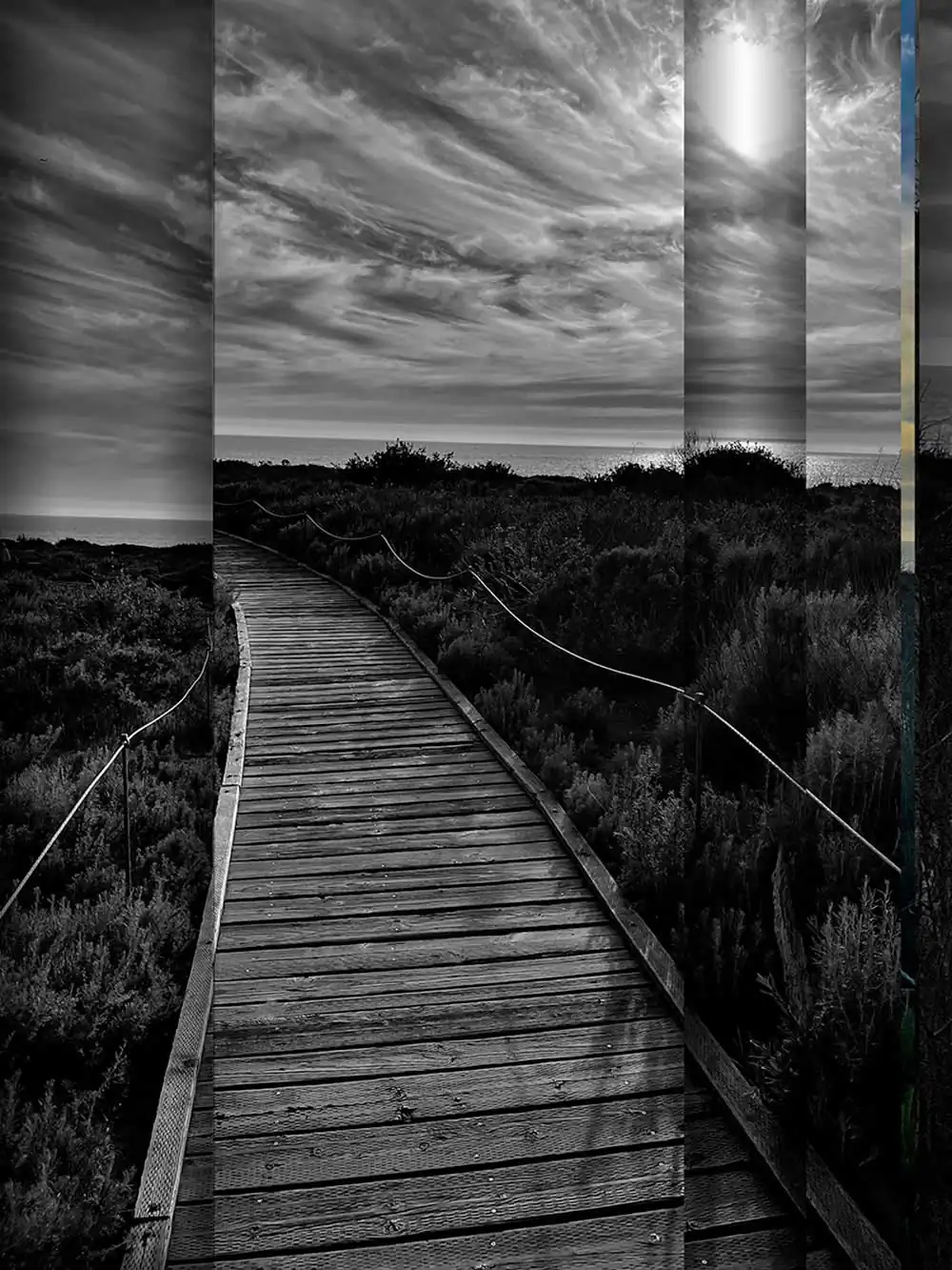 Thus, most of the information we take in visually is thrown out, or given less prominence in order not to overwhelm our senses. In my work, I’m picking out what I notice the most in an image, and I give it more prominence, either by rotating or enlarging a section, segmenting others, or colorizing select pieces. I’m trying to replicate what I think my brain is selecting what I see, not what my eyes select/see. Consequently, I’m also trying to figure what my brain registers as “important.”