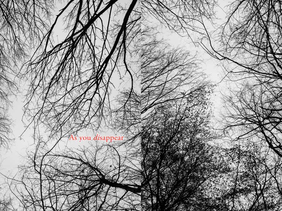 The sadness, emptiness and hopelessness I was feeling at the time was reflected in the shortness of my breath, a penetrating pain in my chest, a deep twist in my stomach, and an intermittent ache in my brain. The end result of this new awareness is a project called “As you disappear” – my catharsis. It is an in-depth study of psychogenic pain and the somatic and affective aspects of loss through photography. The photographs feature my beautiful and talented sister, Mathilde Lévêque, who has recently graduated with the highest distinction at the Royal Conservatory of Brussels. The images were shot in Northern France in December last year in a hibernating forest, just behind the house where we grew up.