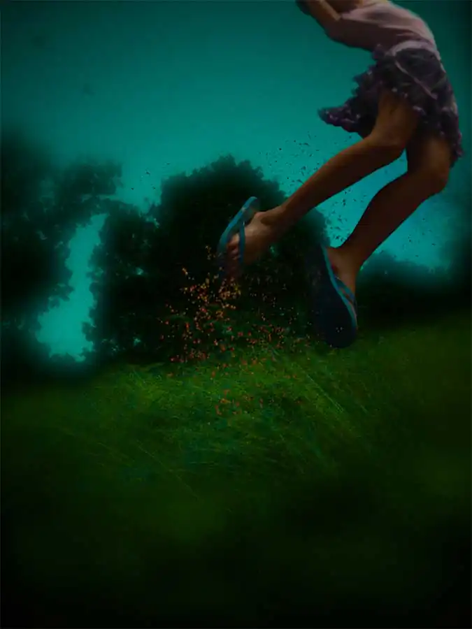 The photographs for this series are cinematic narrative photomontages, fictions meant to seem like snapshots of “reality.”  The implication is that our reality is created through the limitations of our perceptions.  This allows me greater flexibility in controlling the visualization of each image. I am not attempting to find that unique moment and then document it.  I am trying to create that “unique moment,” which makes my process closer to a cinematographer then a documentarian.
