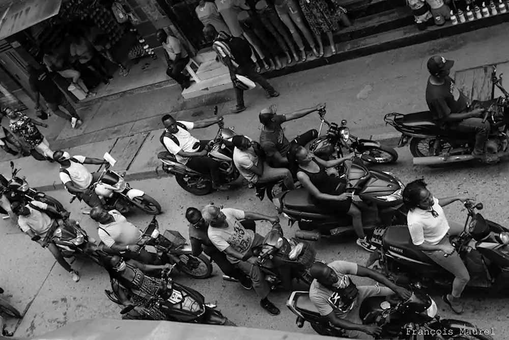 Night work, when gringos are prohibited from circulating, because the brigades of the “NIGHT” are lurking… François, with his seductive smile, casts a fierce or tender glance on this world that has lost its mind. His goal is resolutely on the side of those who fight for a piece of bread. Ultimately, for those who have the courage to live. With his boxes and a few dollars, he zigzags around the planet without goal or trophy, because he is with the photographers in the sacred fire.