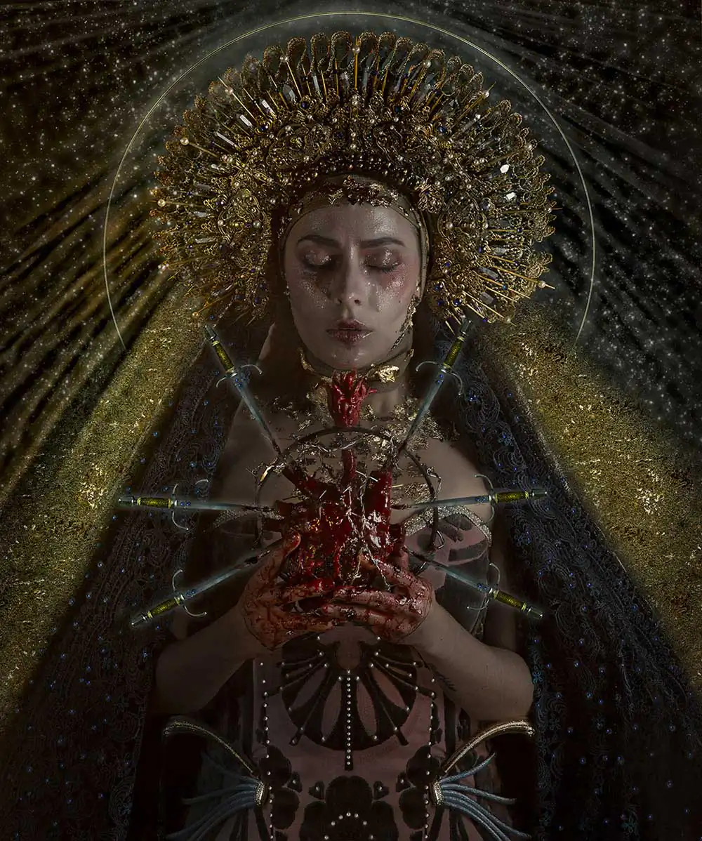 This series is about recognizing yourself in the soul. I appeal to virgins and goddesses of different cultures as a bridge to represent spirituality through femininity.