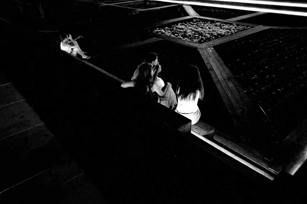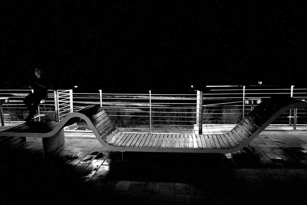 Night is his preferred time for Flânerie, more interesting to him than day. Actually, not only for photography – he is a night bird. He created this series while wandering across the streets of Tel Aviv in the late-night hours of autumn 2022. He likes to keep a distance from the people he shoots. Many look like shadows. This time he shot in black and white. He feels closer to the outcome he wants. Hopefully, the viewers will find those images interesting.