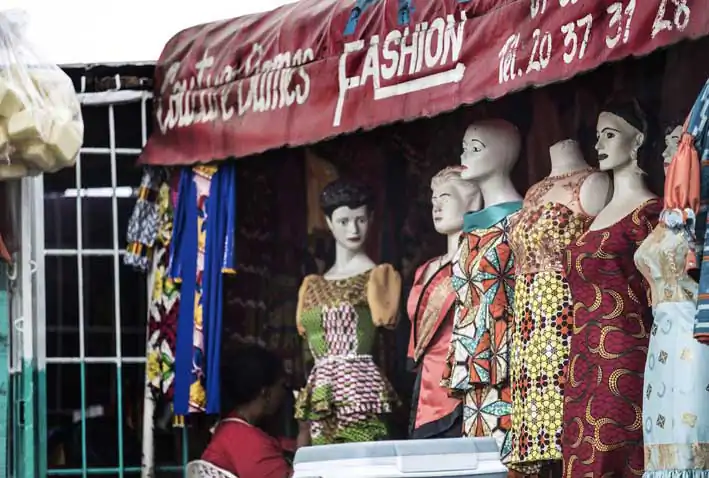 Adjamé Cocody , Treichville, Marcory.. in every districts of Abidjan, shops are selling cloths made in china, alternate with tailors shop and Traditional Outfits shops.