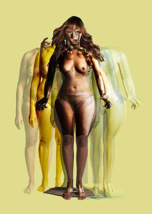 These compositions are the result of “real women’s naked bodies” superposed with the “perfect shaped” mannequins to finally reach to an hybrid representation of what is supposed to be a “perfect woman”. the “real one” and the “perfect” one.