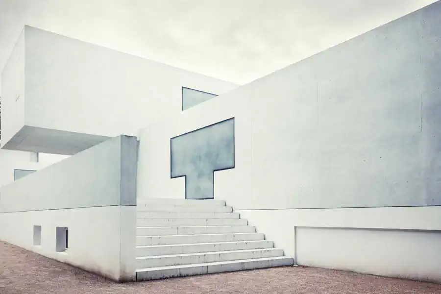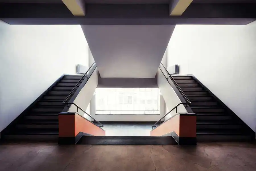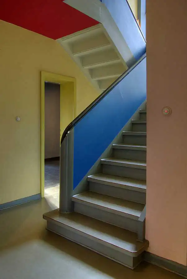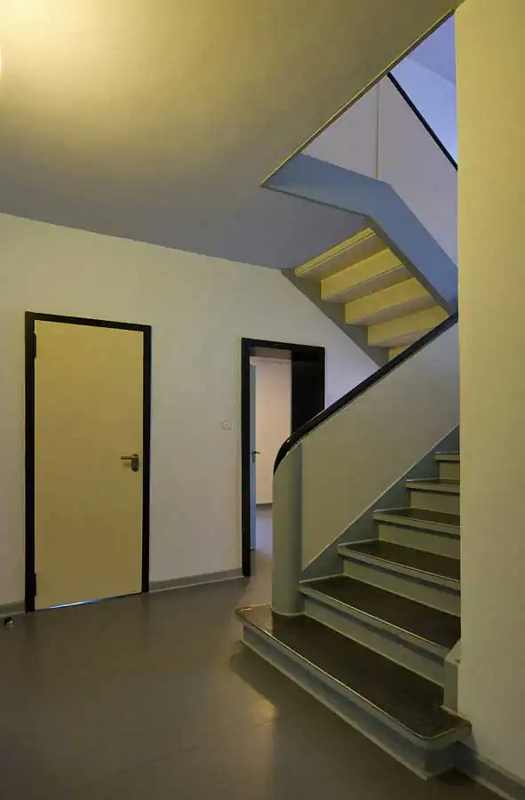 ”Bauhaus“ was based on modernism and proclaimed a radical stylistic change, which was opposed to the aesthetics of historism with all its reproductions of earlier ornamentic styles. ”Bauhaus“ artists created architecture, furniture, kitchenware, paintings and photographies. Besides Walter Gropius himself famous ”Bauhaus“ masters living in Dessau were Lyonel Feininger, Lazlo Moholy-Nagy, Oskar Schlemmer, Georg Muche, Paul Klee and Wassily Kandinsky. For the few years in Dessau they resided in the four master’s houses that were created by Gropius and build in the typical ”Bauhaus“ style in vicinity to the famous modern school building. Characteristic features are a functional style with an overall cubical form with flat roofs, plain-colored surfaces and large windows. The latter often connect the interior with the outer balconies and terraces. Among the master’s houses the ones of Gropius and Moholy-Nagy were destroyed in bombings during the second world war. The remaining ones were in a rather bad condition during the four GDR decades and were restored only in 1990. In 2013 the two destroyed houses of Gropius and Moholy-Nagy were rebuilt in a modern way but according the motives to the old ones. They were opened for the public in May 2014 and the architects David Chipperfield and the bureau of Bruno-Fioretti-Marquez from Berlin did a fabulous job. In my photo series I’ve tried to capture the austere functionality of the ”Bauhaus“ architectural style in the school building and the old and new master’s houses in clear, photographic compositions.
