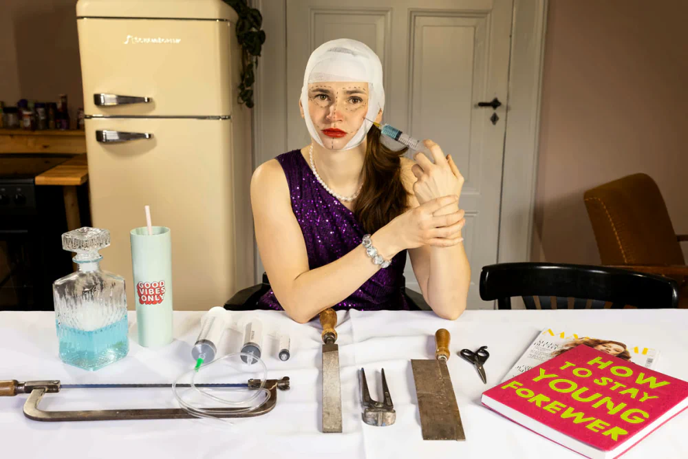 My new photo project, “BEAUTY MADNESS” (Schönheitskoller), explores modern beauty ideals that distort women, making them look like dolls instead of celebrating their individuality.