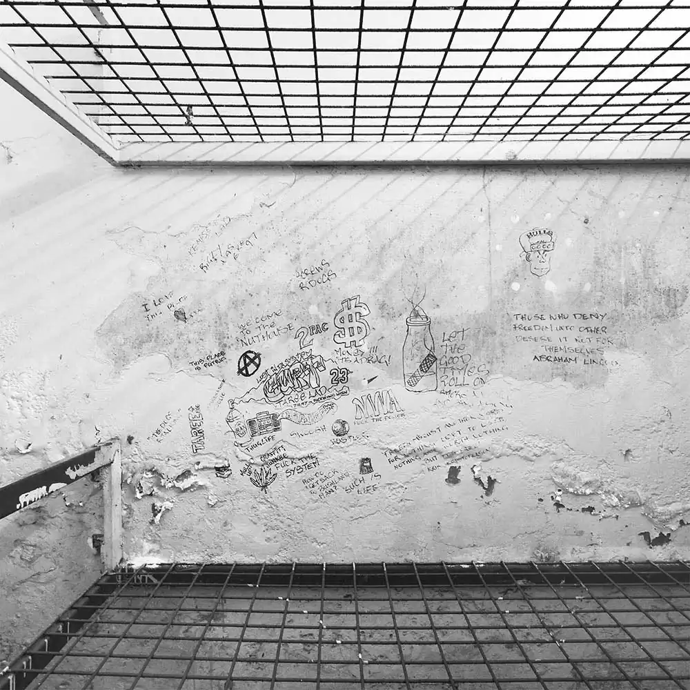 Empty prisons are eerie places. Each prison has its own history, character, and stories to tell, but so too does every cell. Etched into their walls is the passing of successive generations of inmates each of who has carved their passing.