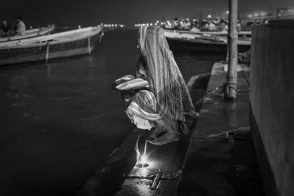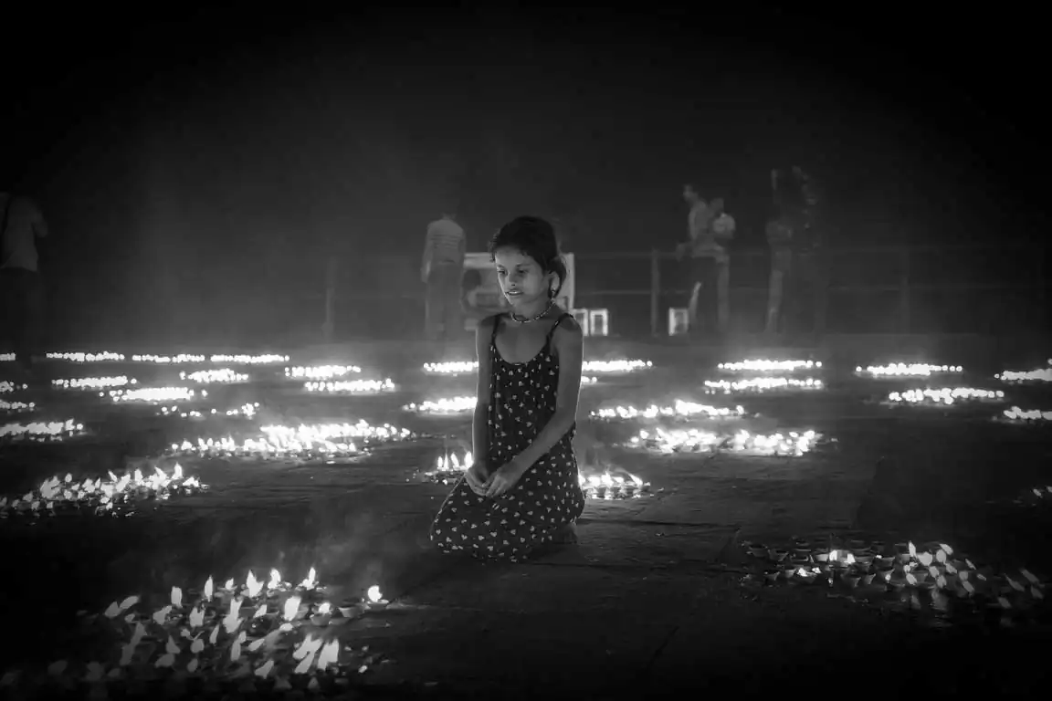 Most of these unique rituals are linked to the Ganges. People surrender their assets to the river, urging it to fulfill their dreams. Mentors bless disciples in the narrow alleys of the old city. Elders pray for a heavenly afterlife following the myth of ancient Indian King Harishchandra’s sacrifice to the society. At the famous Dev Deepavali, a unique mud light show during Autumn, a young girl has been photographed praying for her divinity.