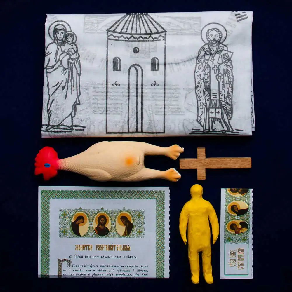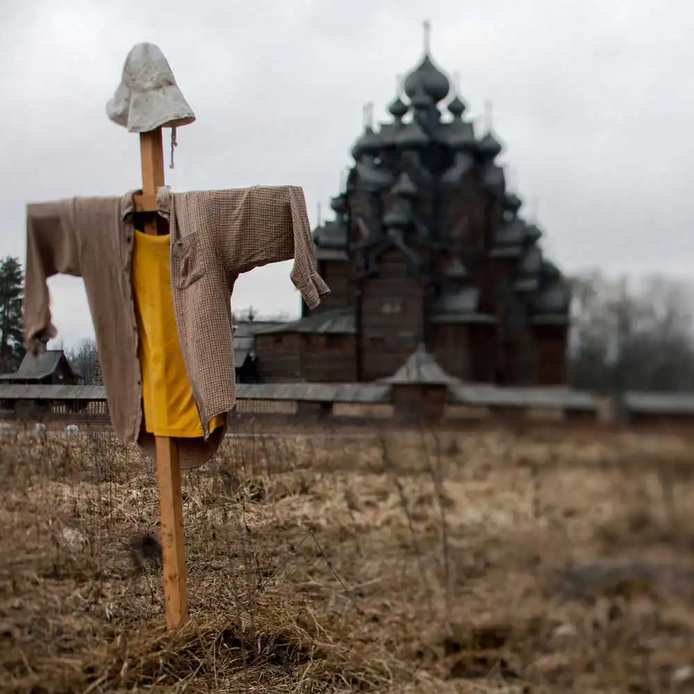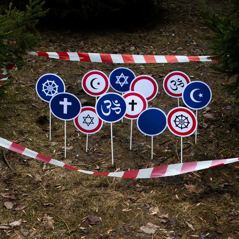 Orthodox Paskha, Van Gogh cocktail and Napoleon cake. In March 2015, Roskomnadzor (Federal Service for Supervision of Communications, Information Technology and Mass Media) issued a warning to the news website about “the inadmissibility of using the media for extremist purposes”. The reason for this was an illustration to the article “Social activists from Novosibirsk opposed the monopoly of the Orthodox Church on morality and spirituality” – a collage of three men in briefs with the heads of Vladimir Putin, Alexander Pushkin and Jesus Christ. Roskomnadzor considered that this image offends “the religious feelings of Christians”. The news website appealed against the Roskomnadzor warning and Roskomnadzor then presented in court an expert conclusion, that said the image insults and humiliates the honour and dignity of those featured on it, to whom the “expert” for some reason referred as “important religious figures”.Handmade scarecrow on the field against the background of Orthodox Church. On June 1, 2016, two residents of the small town Sosnovka were found guilty under Article 148 of the Criminal Code (public actions, expressing obvious disrespect for society, with intention to insult religious feelings of believers). They were sentenced to 230 hours of compulsory work for placing on a standing prayer cross in the village of Staraya Malinovka a stuffed dummy, manufactured using “pants, a jacket, a rope, a hat, a mask and screws” as well as some dry grass. The prosecutors had believed that the act was premeditated and committed in order to insult the feelings of Christians. According to experts of the SOVA Center for Information and Analysis, the suspects’ actions presented no public danger, and should have been appropriately qualified as an administrative offense, rather than a crime.Symbols of different religions (Christianity, Islam, Buddhism, Judaism, Hinduism) depicted as prohibitory and mandatory road signs, fenced together with a prohibiting tape. A seminar for the alcohol and drug dependent, led by Bishop Sergii Zhuravlev of the Ukrainian Reformed Orthodox Church of Christ the Savior in the premises of the New Hope (Novaia nadezhda) Jewish messianic community in Petersburg, was interpreted by the court as an effort to “persuade the Jewish community to convert to Orthodoxy”. In September of 2016 Bishop Sergii Zhuravlev was sentenced to a fine of 5 thousand rubles (about 70 eur.) under Article 5.26 of the Administrative Code (the conducting of missionary activity in violation of the legislation on freedom of conscience, freedom of religion and religious organizations).Exhibit of military equipment exhibition from reconstruction of the battles of World War II that took place in St. Petersburg in 2017. In January 2015, Svetlana Davydova, the mother of seven from Smolensk city, was detained under Article 275 of the Criminal code (state treason) which may result in imprisonment for 12 to 20 years of life. The charges against Davydova relate to a phone call she made to the Ukrainian embassy in April 2014. She rang to inform them that the military unit next to her home was deserted, and that the soldiers might have been sent to Donetsk in eastern Ukraine. Davydova spent 2 weeks under custody in detention center and then over a month under house arrest. On March 13, 2015, the case was finally dismissed for lack of evidence.Lenin bust in the light of the projected picture of yellow field and blue sky. In September 2015, a criminal case under Article 214 of the Criminal code (vandalism motivated by hatred) was opened against Alexey Moroshkin, an activist from Chelyabinsk and the founder of the Church of the Chelyabinsk Meteorite. The case was initiated for painting the bust of Lenin in the colors of Ukrainian flag – the activist openly published photos from the place, stating that the action was intended to demonstrate support to Ukraine. On December 4, 2017, the case was closed due to the expiration of the statute of limitations. Another criminal case against Alexey Moroshkin was initiated in the summer of 2015 under Article 280 (public incitement to separatism) for posting online a series of 12 texts, which called for secession of the Ural region from Russia and creation of the Siberian federal union. In November 2015, Moroshkin was sent for mandatory psychiatric treatment, after having been diagnosed with “paranoid schizophrenia,” with added specification: “reformist delusions of religious nature”. He was released from the psychiatric hospital in mid-June 2017.Objects of Christian burial rite, “voodoo doll” and toy cock. In February 2016, against “master of voodoo magic” Anton Simakov was brought a criminal case under Article 148 of the Criminal Code (public actions, clearly defying the society and committed with express purpose of insulting religious beliefs), due to the fact that in October 2014, in his office, he performed the ritual of his religion. According to Simakov, the purpose of the ritual was to magically influence the authorities of Ukraine. The ritual included a voodoo doll, the blood of a sacrificial animal, as well as objects of the Christian burial rite that are used during the funeral. On April 12, 2016, it became known that the court sent a “master of voodoo magic” to compulsory treatment. Simakov left the psychiatric hospital after the course of treatment in January 2017.Three women «fry» a toy crocodile. In January 2016, Internet publication “Horizontal Russia. 7х7” was sentenced to a fine of 200 thousand rubles (about 2500 eur.) for mentioning the national name of the Eternal Flame memorial in Syktyvkar – “Women frying a crocodile” . The publication was held administratively liable under Article 13.15 of the Administrative Code (public desecration of symbols of Russia’s military glory, committed with the use of mass media and (or) of the Internet). The Supreme Court of the Komi Republic overturned 