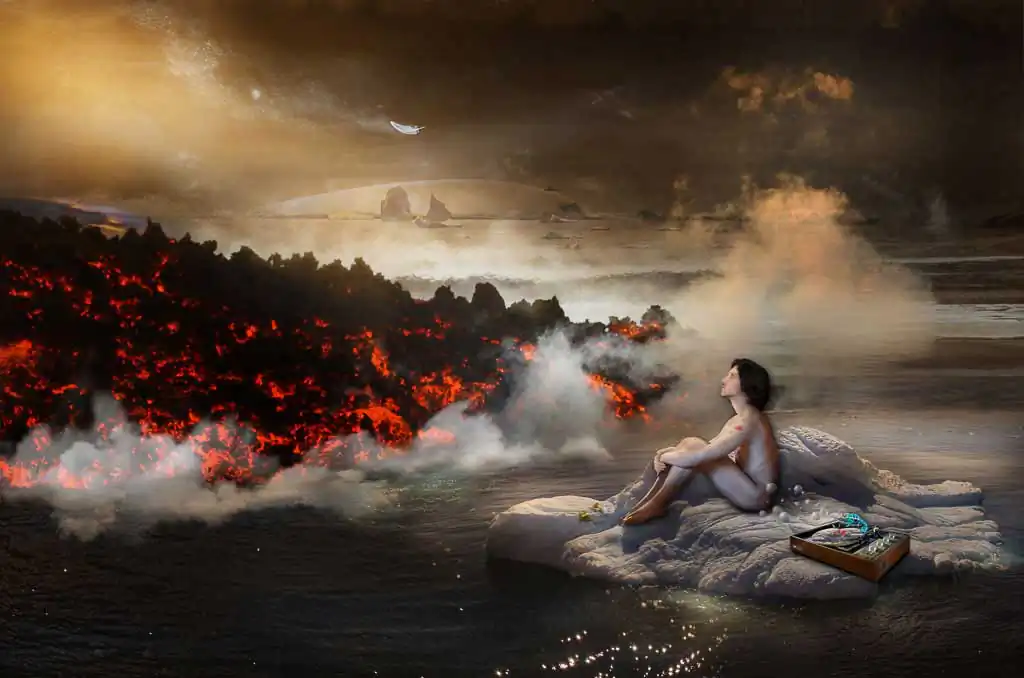 The first part of the exhibition places Man, in a dreamlike and allegorical universe, at the center of my preoccupations and, in particular, my series “ The Fabulous Opera ” which strives to show how much the conditions and origins of birth can weigh as much on the psyche as on the pneuma, and more broadly, on the whole life course of any person born, or having grown up, under disadvantaged, adversary or tragic conditions… It is an eminently social series questioning the philosophical problematic of Destiny, through the tragedy of a young child born in Cambodia and sentenced to death by the Khmer Rouge for the impropriety of his origins, and who, exfiltrated to France after having “miraculously” escaped his executioners, is going to experience there the tragedy of humiliation, exclusion and the terrible desocialization of the homeless, which will lead him to the gates of lethal madness. This is a nowadays tale in which a young man who only dreamt of a normal life, is going to suffer hell before finally knowing, against all odds, a fabulous destiny.