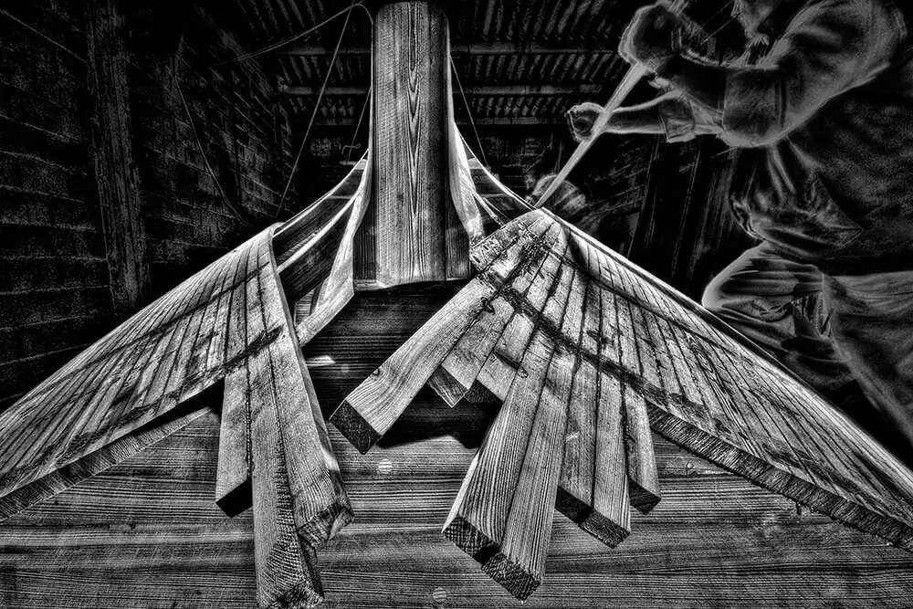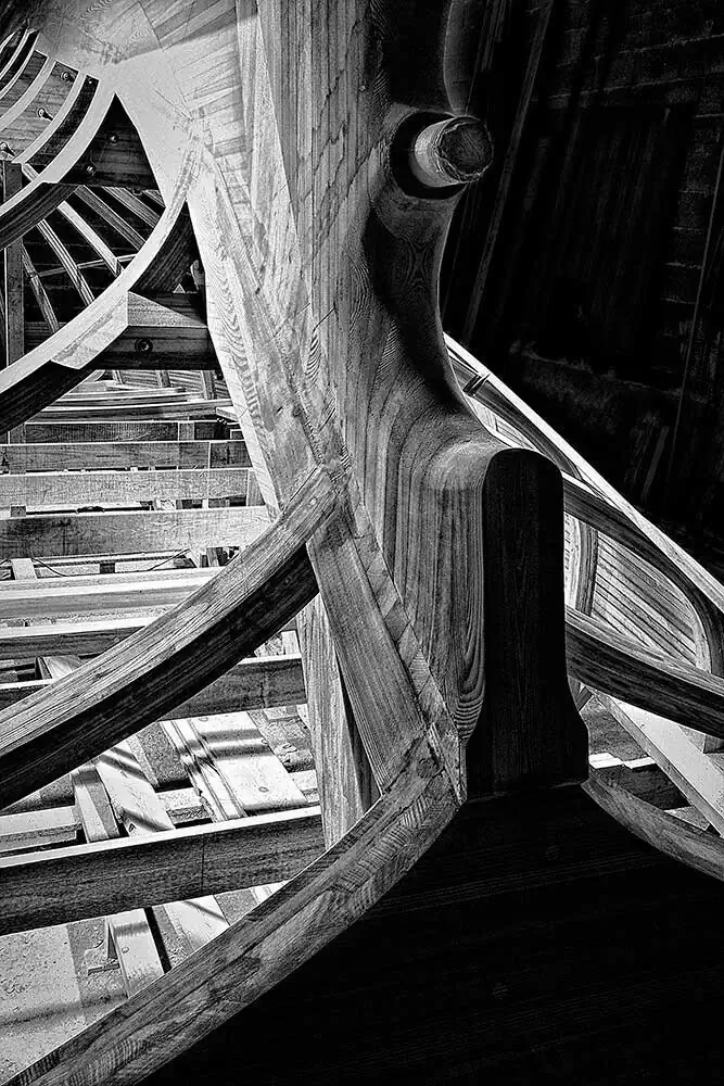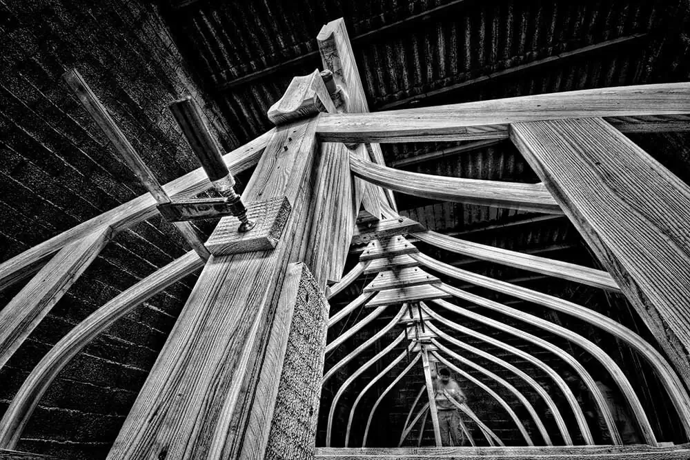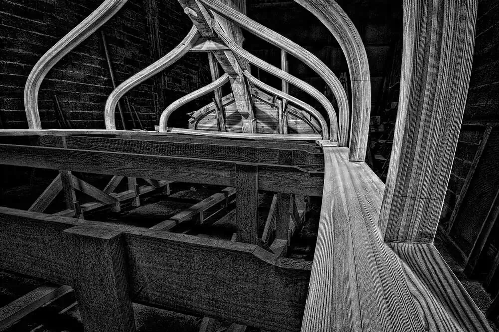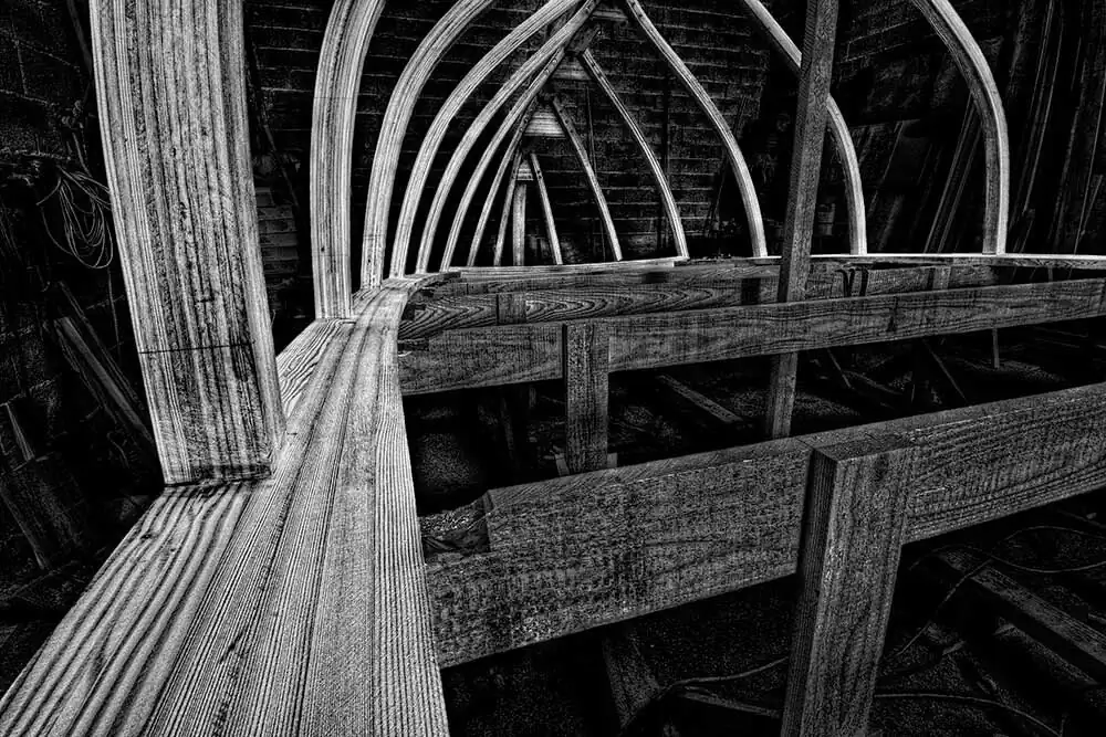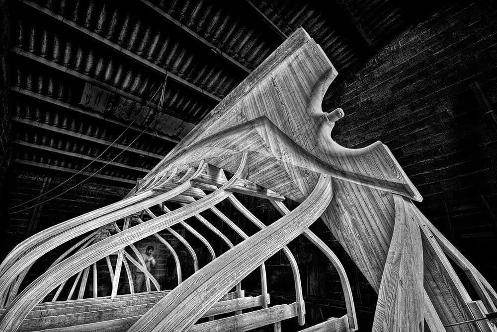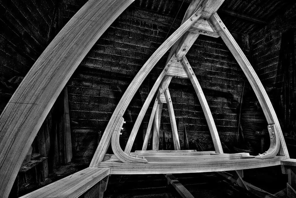 The ugly hangar progressively turned into place of worship almost like a church, where people came to pay their respect and admiration to a man who chose larch and iroko instead of plastics; the place like a concert hall radiating background echo of the sounds made by the tools, whispers, conversations, jokes and the thoughts of the boat builder and every spectator and bystander. All the pessimism had gone.