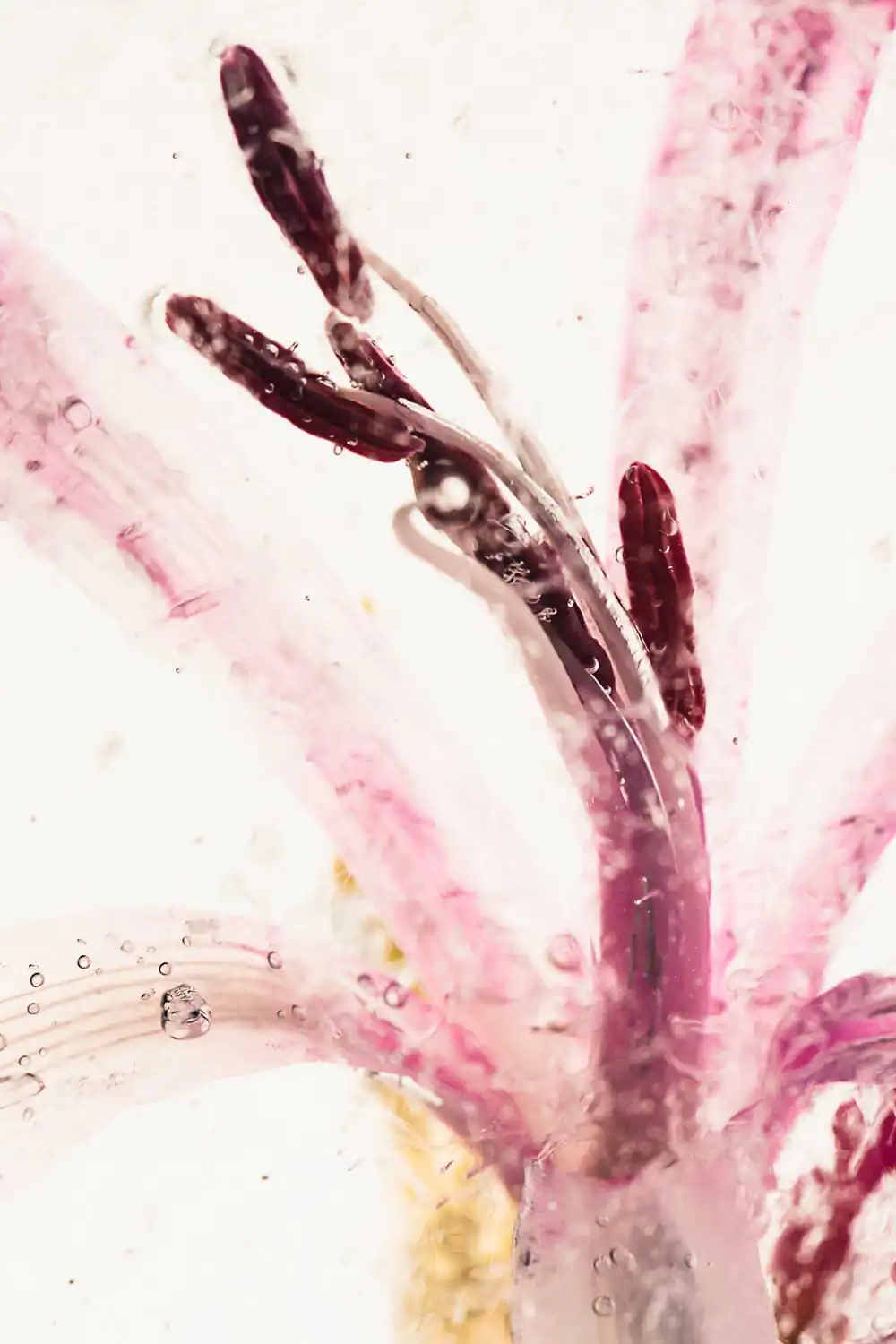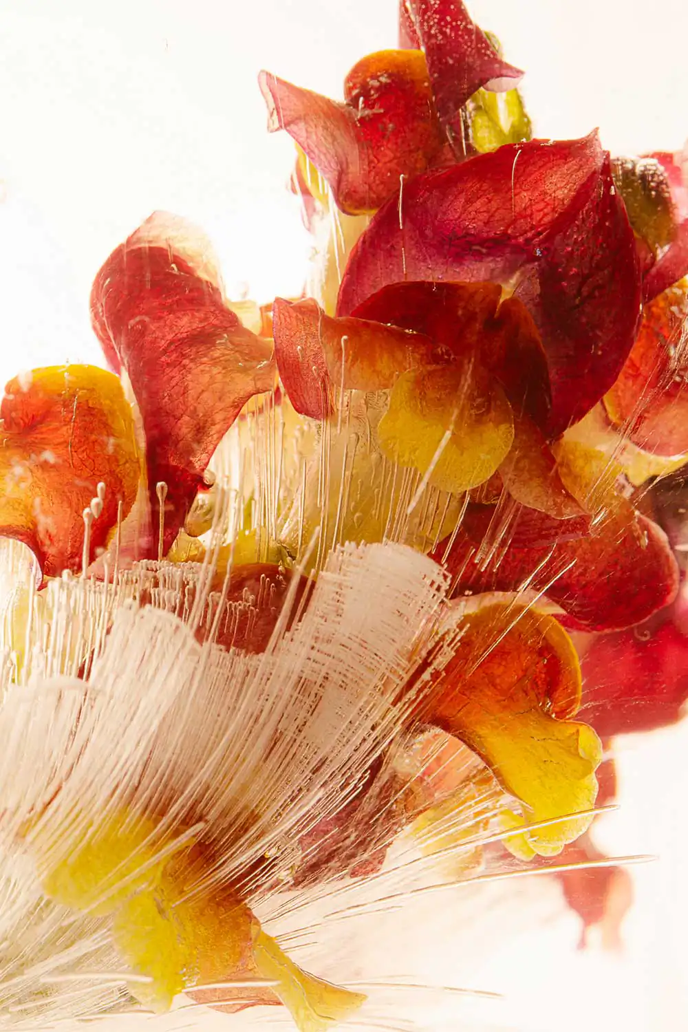 My florist already had some of my photos on his flower cards for his customers. I worked for several years to produce crystal-clear ice. I watched ice in nature to learn how it could get crystal clear. I can’t, and don’t want to, control the result exactly. When I take the flowers out of the ice, I never know exactly what I’m going to get. This always makes the project exciting and thrilling.