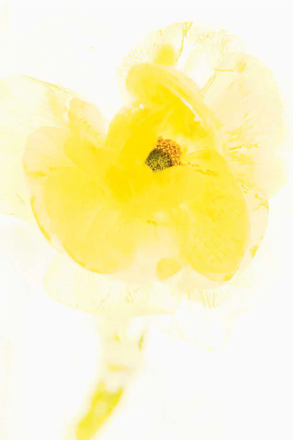 This work encourages reflection on the themes of transience and preservation. It invites the viewer to reflect on the duality of life and death—how something as vibrant as a flower can be captured in one moment, only to be extinguished in another. The yellow dahlia symbolizes joy and optimism, while the ice simultaneously represents coldness and stagnation.