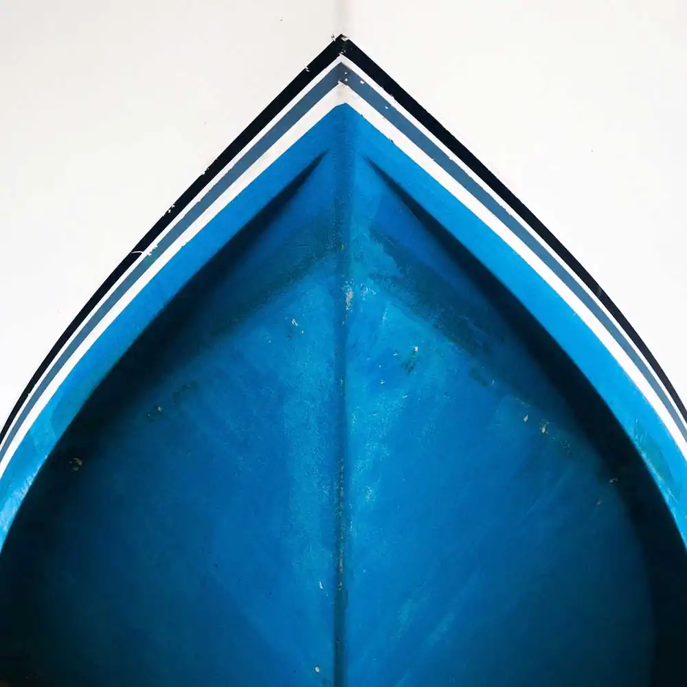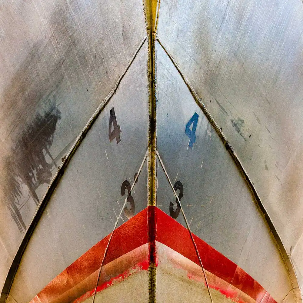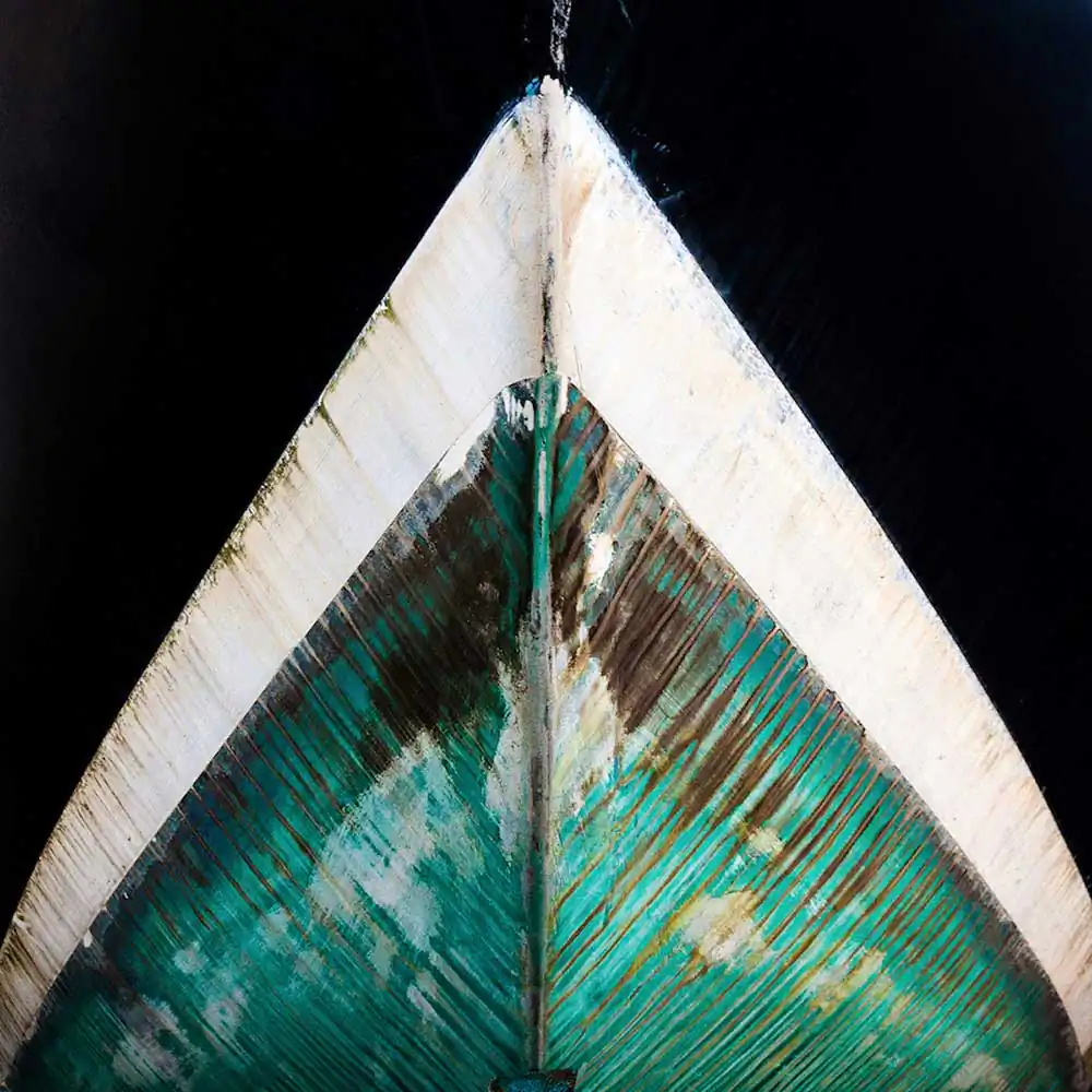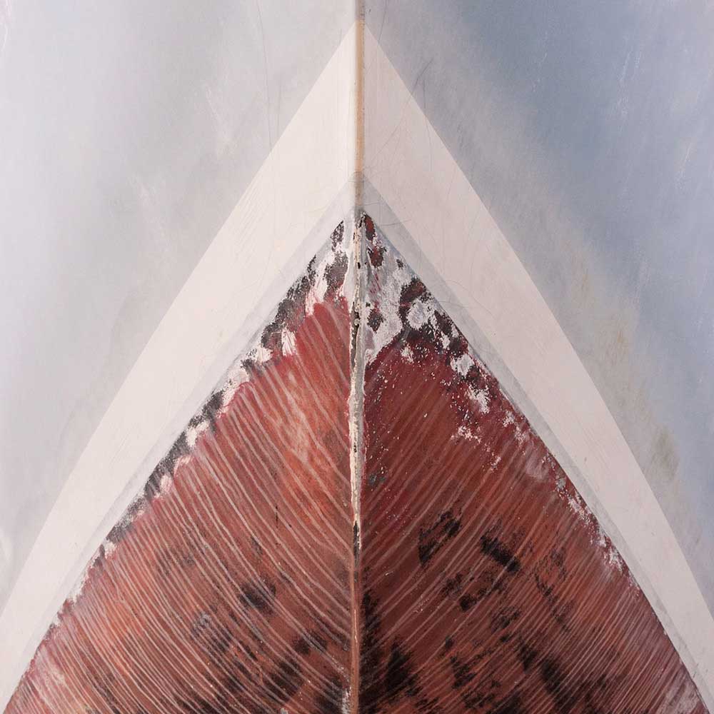 I find particular interest in the contrast between the abstract patterns of the structural and painted lines and colors of the hulls, and the evidence of their weather and age, which together create a unique interplay of textures.By focusing my compositions on the triangular patterns of the hulls in a square format, I am able to highlight the essential geometry of the images. Photos in the ongoing series transform often humble vessels into abstract portraits, revealing their individual identity and experience and celebrating their imperfect appeal.