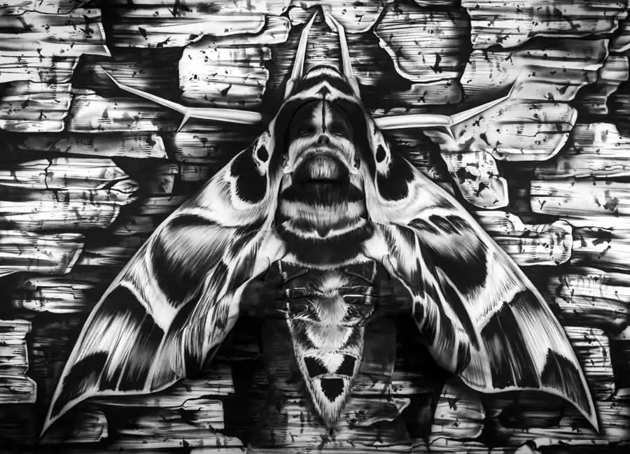 Several of Roustan’s images have gone viral on the internet. The first major success, an extremely difficult to find camouflage body painting of a “Pandora Sphinx Moth” generated over 70,000 hits to his website in one day. Roustan has definitely had his share of navigating the taboo water of nudity. [Official Website]