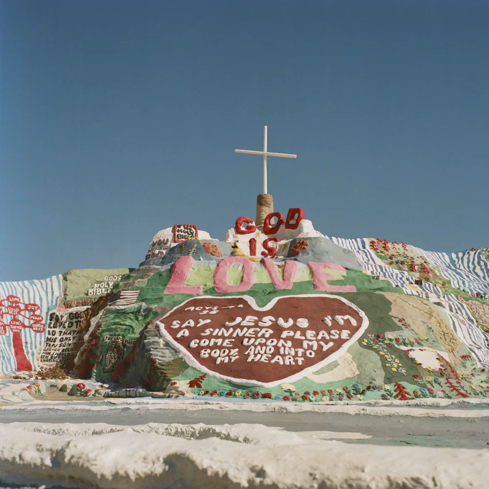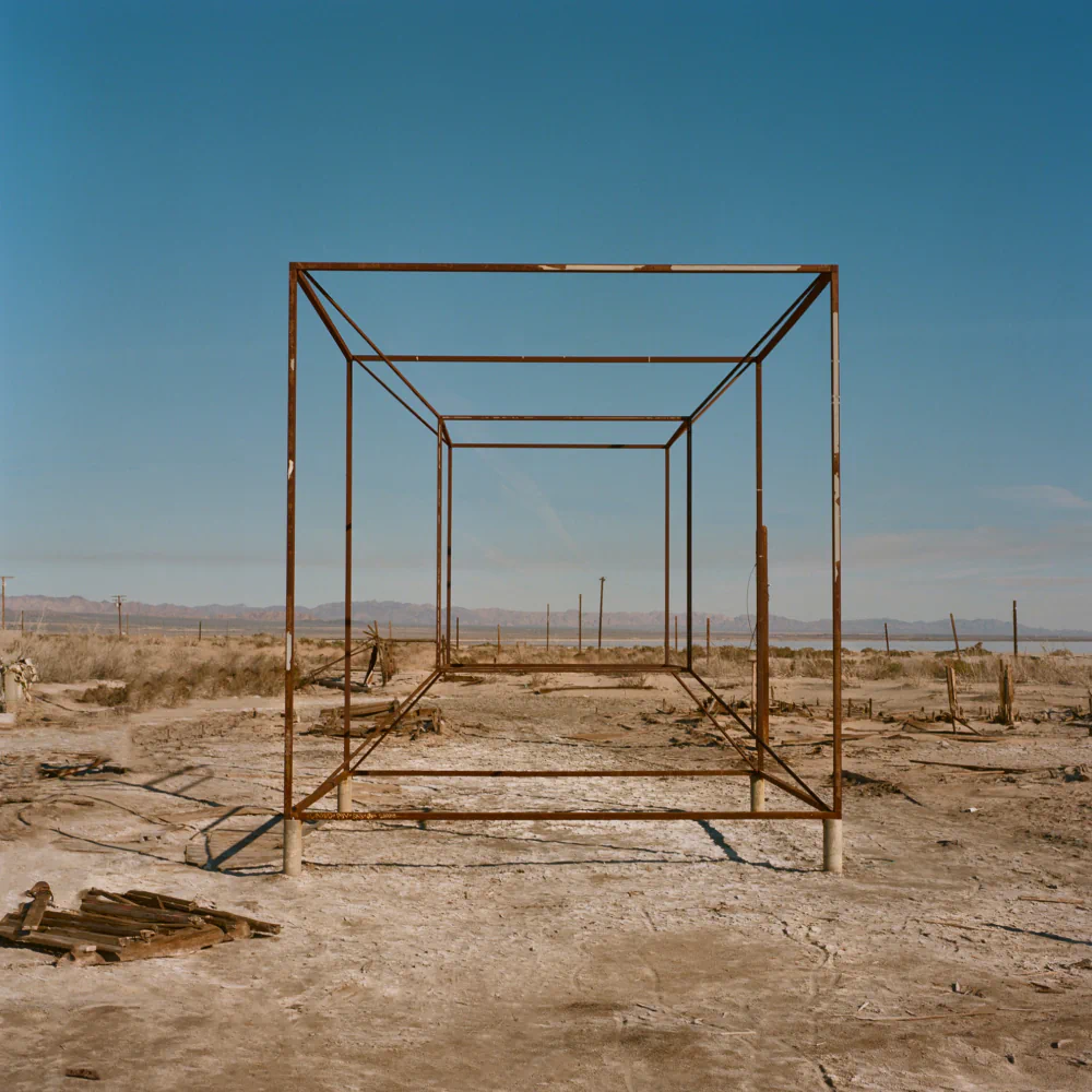 Walking through Bombay Beach now feels like entering a future that arrived early and wore itself out. Installations rise from the dust like messages left behind for someone who never came. A billboard still stands, bleached and skeletal, radiating a sense of a “used future.” It speaks in the visual language of abandoned promises, where optimism has cracked but not disappeared.