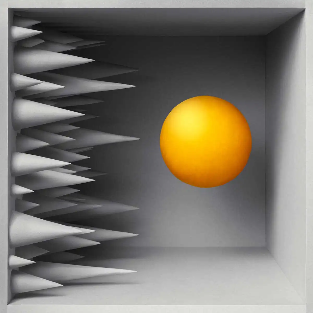 The soft yellow shape is threatened of all the sharp peaks. you have to be strong to be capable of resisting it.