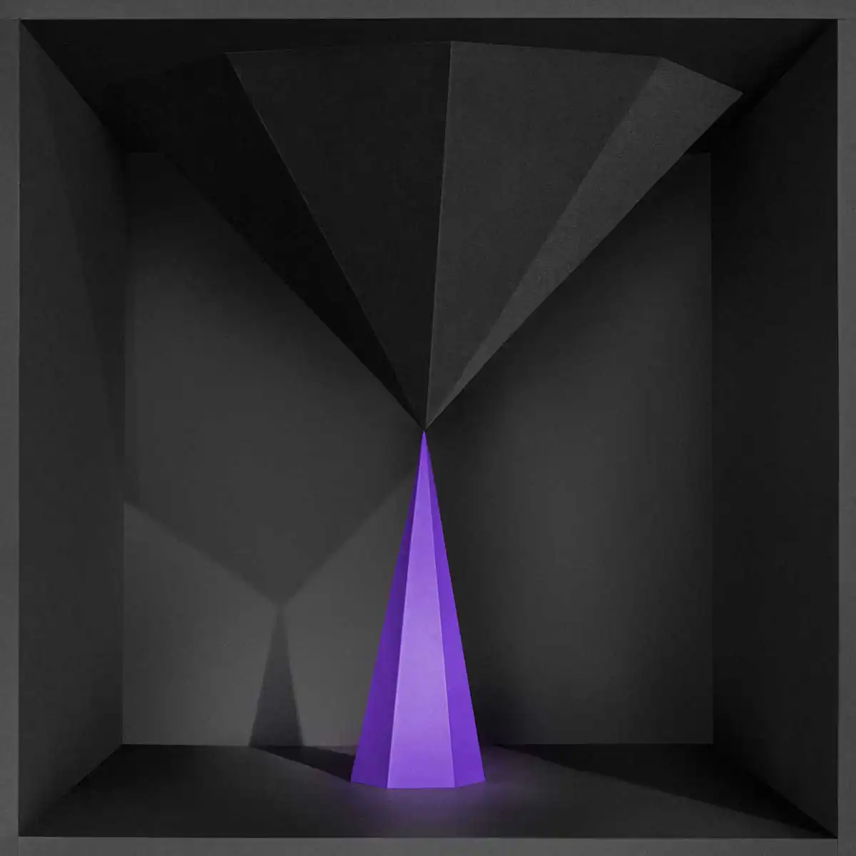 I made the images from dark to light with just one shape in color. The coloured shapes are those who possess power. I want to do my own props if it is possible. It is not just with the computer I want to be creative, I really love to use my hands and create things that I can actually touch. I wanted to do the whole picture in paper and made the box out of thicker paper and folded all the peaks by myself. Actually everything is made out of paper except the yellow ball, it is a styrofoam ball that I painted in yellow. I think it is interesting that it looks a little like 3D but when you take a closer look at the picture you can see that it is made out of paper.