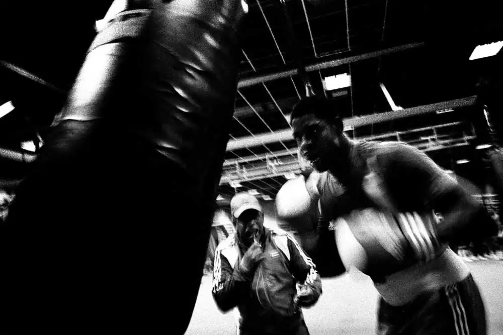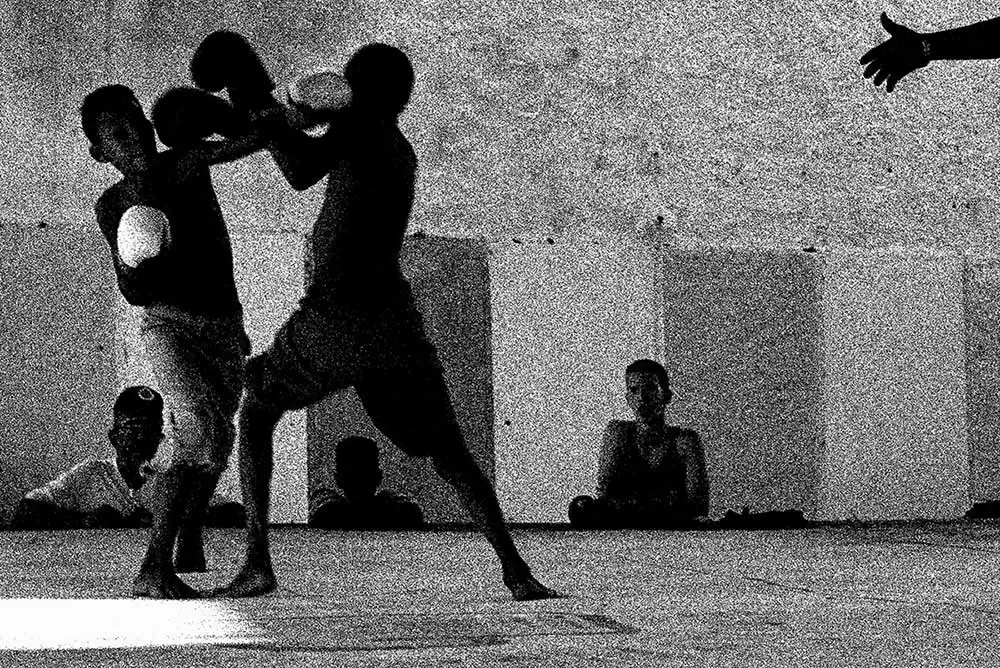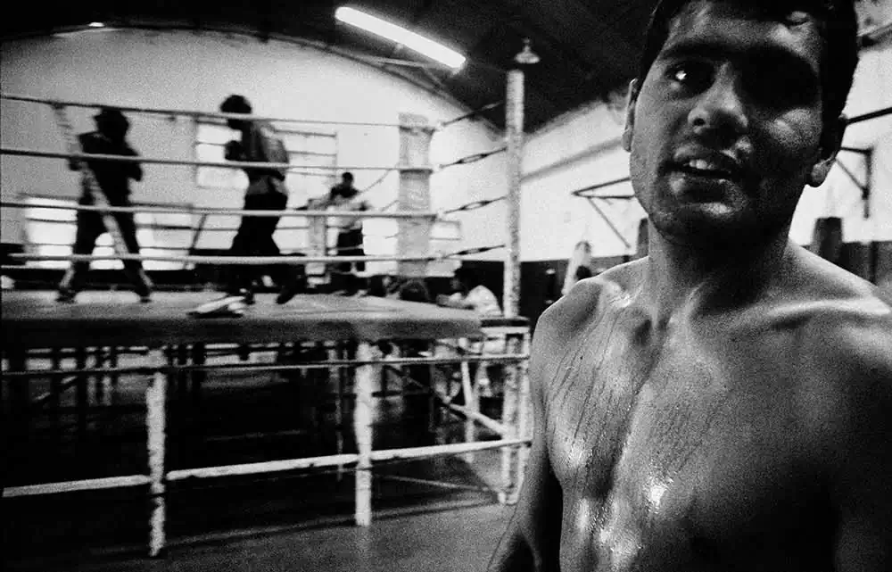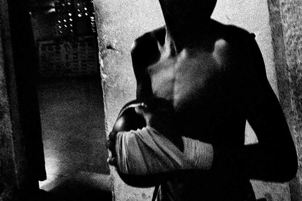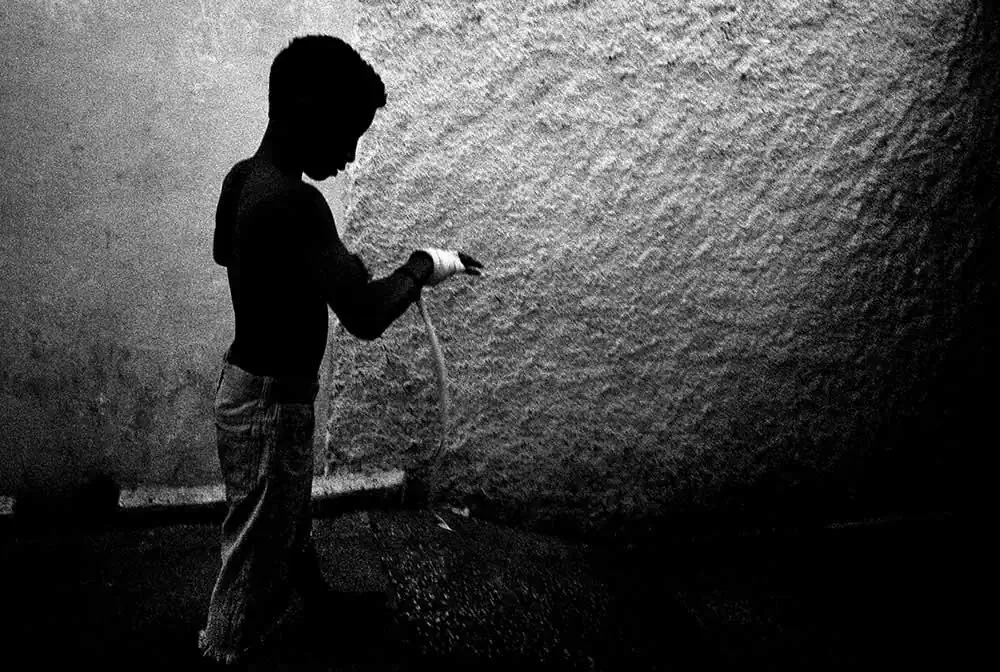 With this memory, I went looking for those atmospheres and values of the great boxing of the sixties and seventies. Ropes, wooden planks, nails, torn carpets, peeling walls, worn-out shoes, feet, gym bags, towels, robes, sacred images, iron stairs, neon lights, grimaces of pain, laughter of victory. Boxing. For instance from the “poor” gym, Academia de Boxeo Henry Garcia Suarez, in Holguin (Cuba), have come Olympic and world champions. And you’d never guess.I was attracted by the almost paternal respect for the coaches and champions, the discipline for training, friendship among companions, the rhythm of legs and veins, pride and courage.
