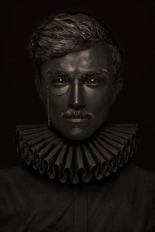 To create a singular series of portraits, I designed and sew all the collars the models wear. These collars are not only decorative since they influence the models’ attitudes and postures. Even if some characters’ appearance or clothes evoke distinctive features of specific historical periods – ruff, monocle, etc. – I did not want “Bronze” to be a historical reconstruction. [Official Website]