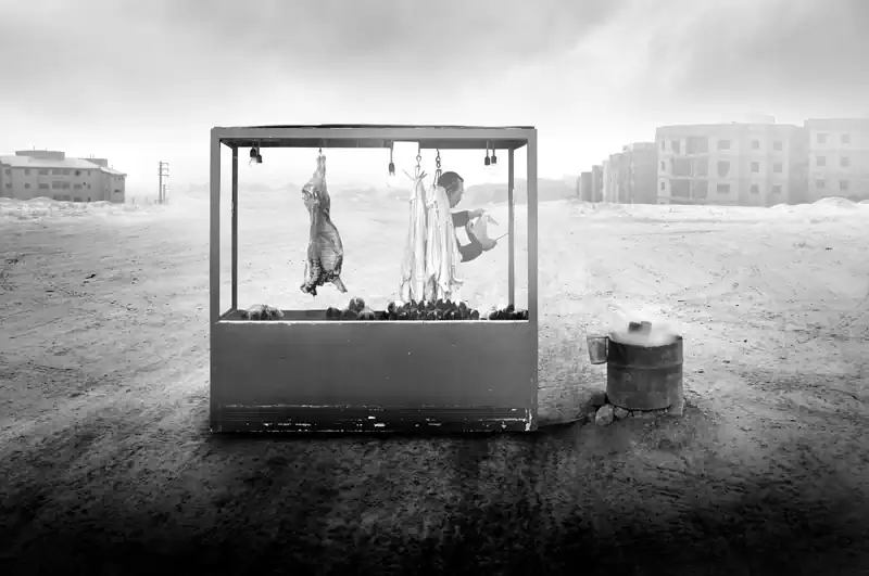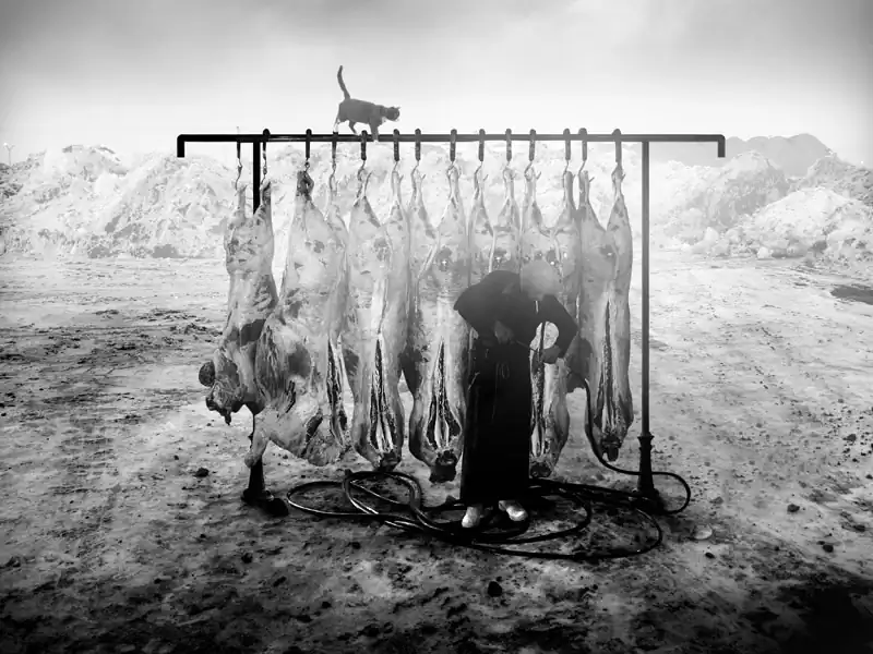 And they believed that sacrificing of the cow and spilling of its blood made the earth fertilized then life appeared. Presence of the cow as a human company, advocator of feeble animals, boarder guardians shows purity, blessing, wisdom and gracefully of this cattle. Thus here, in “Cow slayer” is not only a mythological character but also a symbolic figure for wretch humans who are the victims of: politics, economy, mental issues and other misery of contemporary situations. In this collection, “Cow” is “pure soul” of humans who are involve with lust and concupiscence of today’s life. A life which is full of conflicts and tumult and could drown every pure creation. [Official Website]