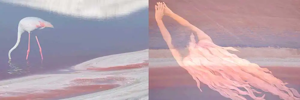 In “Alambicco” series, Paola represents the oscillation between two worlds: the real (the Camargue in this case) and the dreamlike. There is a part of Paola that would like to be multiple, to experience this multiplicity, to give her hope for fulfillment. On the other side there is the fixity of existing, having to be someone that others are used to seeing in you; in between exists the drive for liberation and the will to live as many lives as possible.