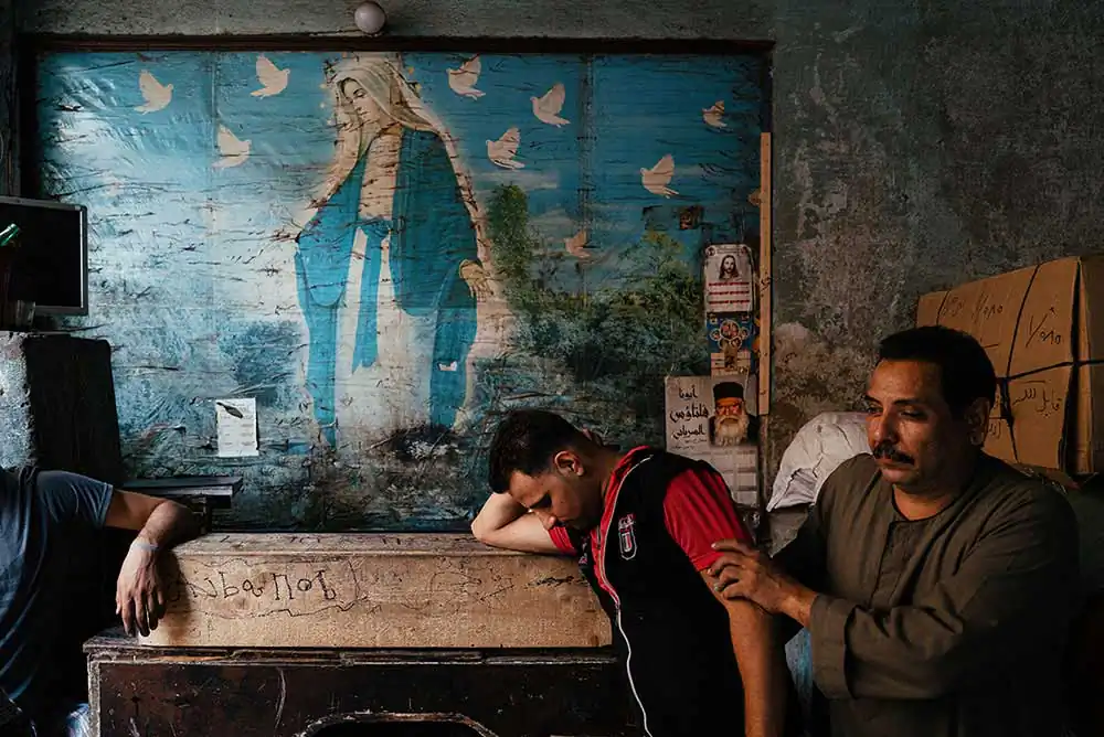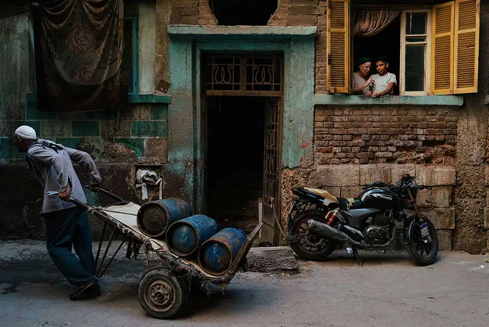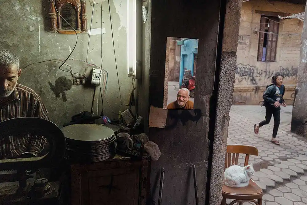 Early on in his work in Cairo, Jonathan was stopped by an older man who was a bit confused and curious by the photographer’s presence in a neighborhood that usually never sees tourists and he was asked why he was photographing. At the time, Jonathan was caught by the architecture and vivid life of the street and motioned to it, stating ‘look at it! It’s beautiful!’ The man lookeded, looked back at Jonathan and said quietly ‘beautiful? It’s an old mess’ as he walked on.