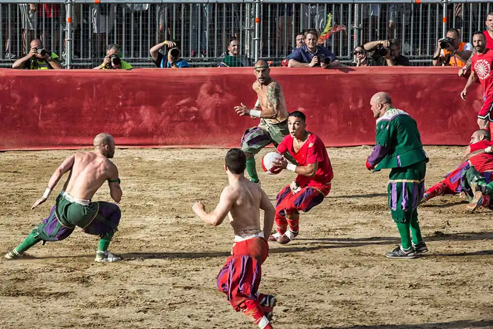The Historical Football was born in Florence in the 16th century and it is a combination of soccer, rugby and wrestling world that nowadays is played in historical costumes.