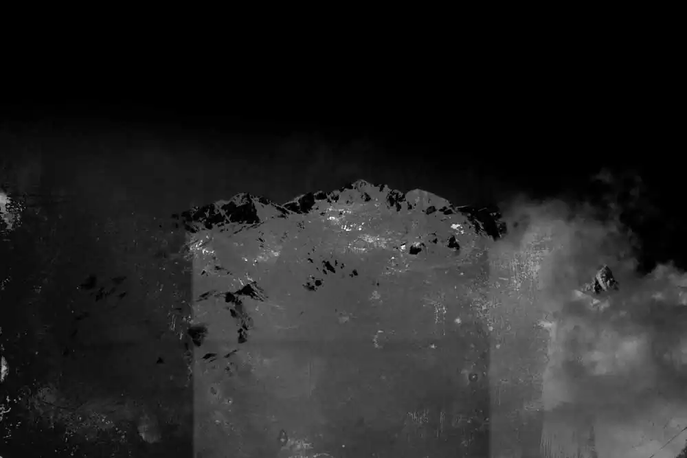 The subjects of the photographic series are mountain peaks shrouded in fog, as well as concretions, furrows in the rock, dark vertical walls and boulders isolated in the darkness. There are no geographical indications or tangible signs to recognize places, it is obviously a mental process. Physical coordinates rise up through interior landscapes within the observer; places of thought, dark dreams or instances of desire. At this point even the title becomes deliberately vacuous, and thus conventional. Only the final epigraph seems to indicate a direction, in turn raising the sole question: