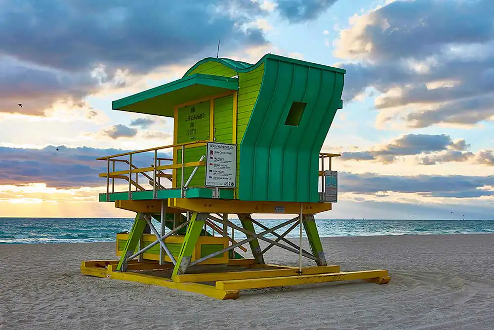Miami Beach has about 35 Lifeguard Towers that dot the beach from 87th Street to South Pointe Park.