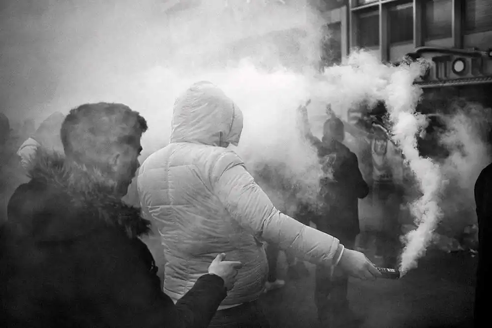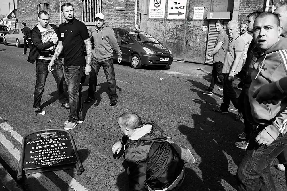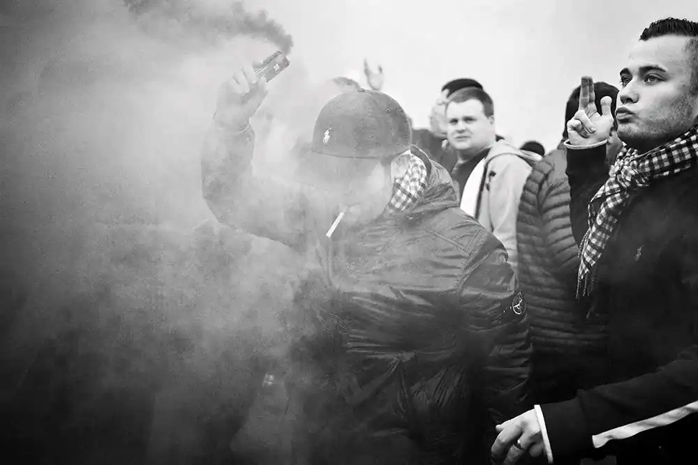 Selected and edited from over one hundred different games, Andersen presents an authentic and unflinching documentation of the fans and their resultant relationships and community. His imagery depicts the drama, tensions, and raw emotions involved in such unwavering support of a football team that infiltrates every part of life.