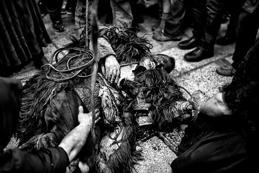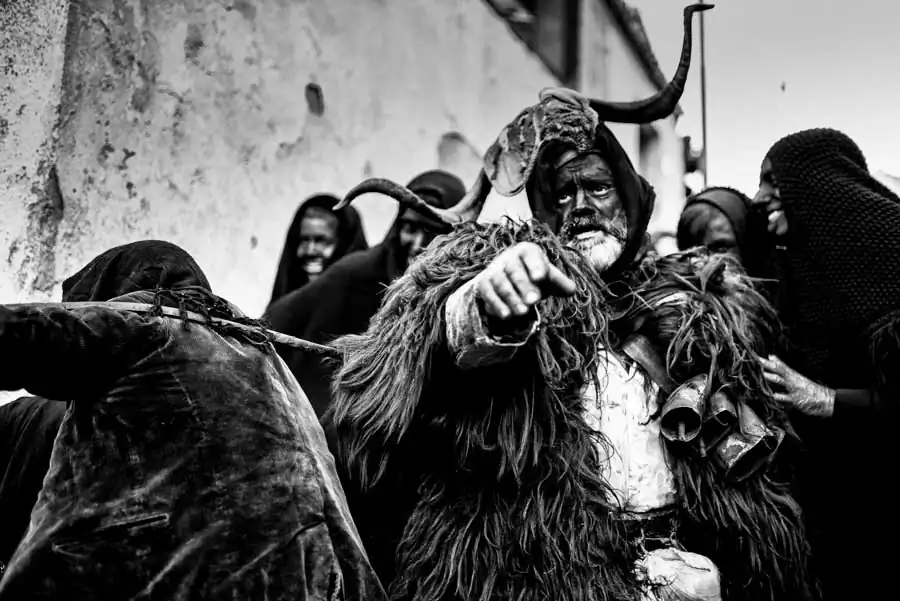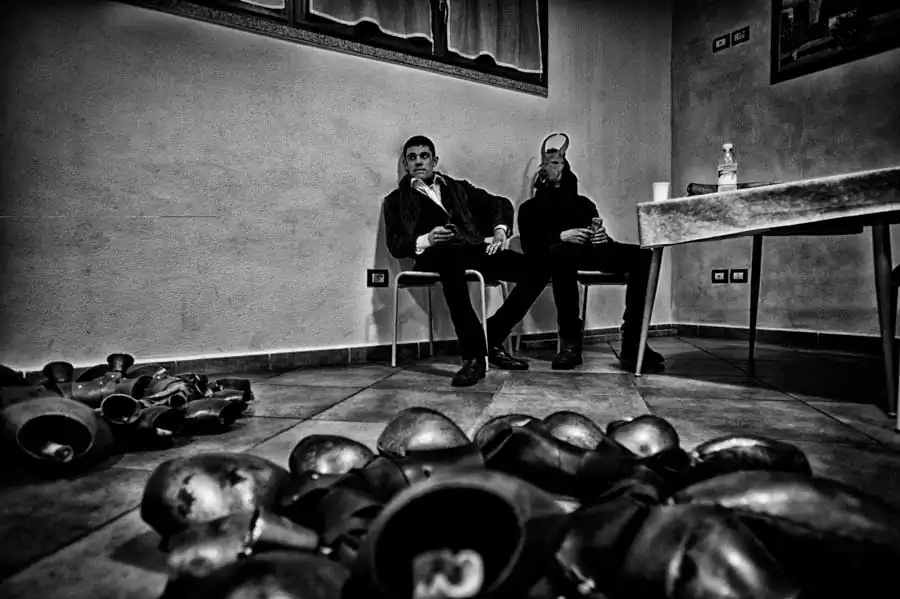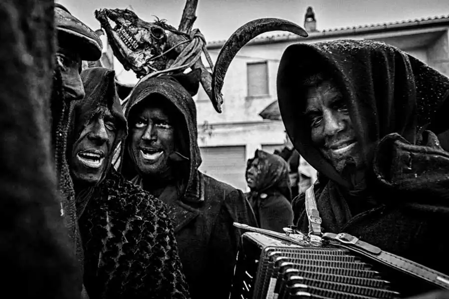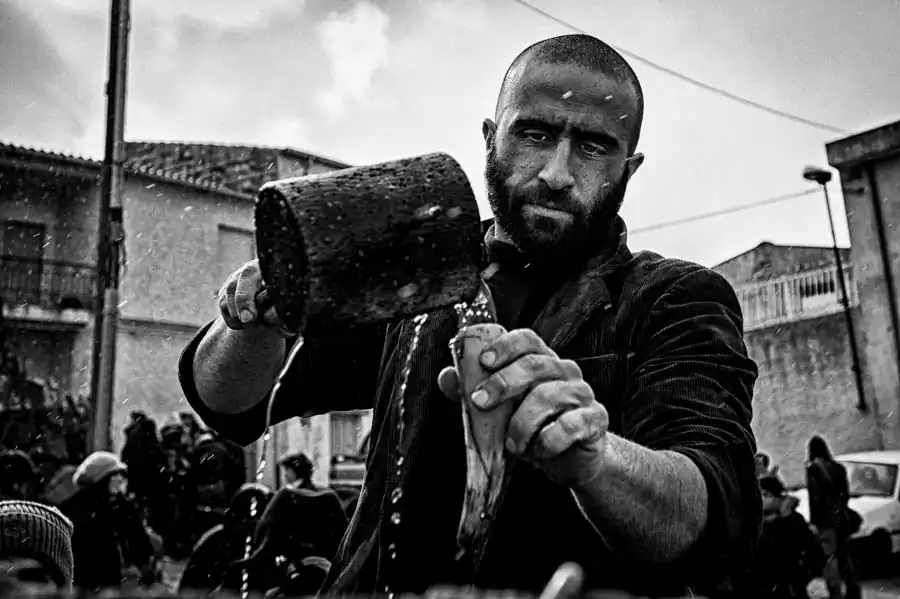 The rites, connected to the agropastoral world, commemorate the Greek God Dionysus, killed and dismembered by the Titans. In some of these rituals, it is not rare to see men and women dressed in mourning, or scenes of capture and sacrifice of the animals, played by men with zoomorphic masks, symbolizing the death of god and therefore fertility. To observe their gestural expressiveness, their dances and animal skin costumes is like being encircled by the historical memory of these lands which each village preserves in a unique way.