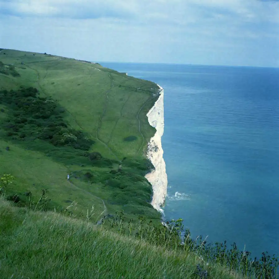 Heavy rain is not healthy for chalk cliffs. The top layer of the porous stone absorbs rainwater and becomes much heavier than normal. Meanwhile, the chalk down at sea level can’t support the weight on top, and a slice of the whole cliff crumbles. To invaders sailing from Europe, the sheer walls make England appear to be a ”fortress built by Nature for herself”, as Shakespeare described it. Defenders on the high cliffs rained defiance down upon Julius Caesar’s legions 2,100 years ago, and again on the Norman conquerors 11 centuries later – although both invading armies managed to make successful landfalls.