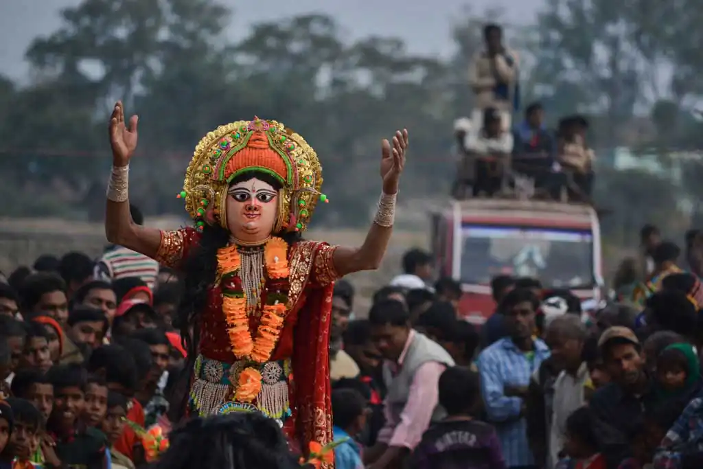 Purulia Chhau is a dance drama form that traditionally draws themes from the two great Indian epics, The Ramayana and The Mahabharata. But with time it has evolved and adapted contemporary social economical issues as themes. Now Chau performances are used to create awareness on different life threatening issues like human trafficking, child marriage, illiteracy etc.