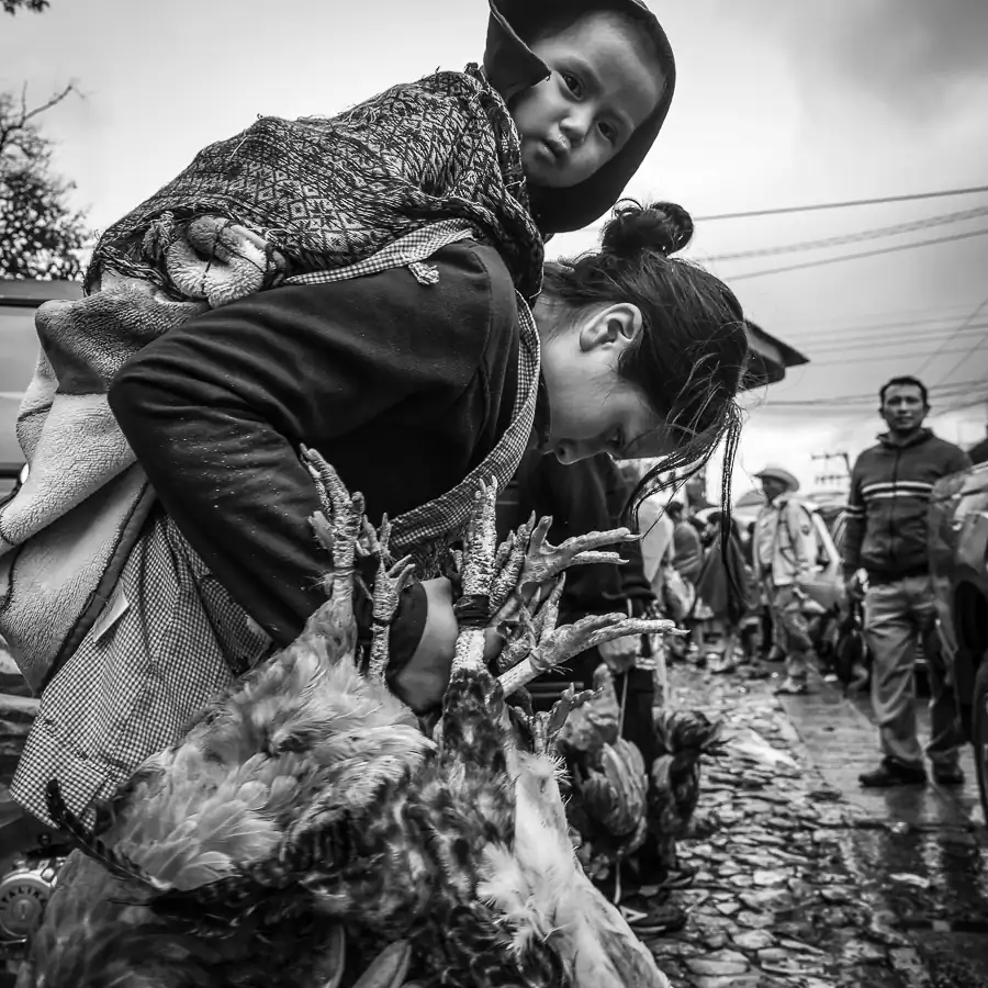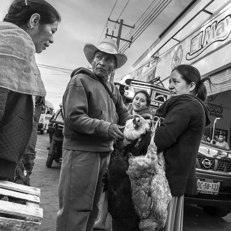 Every day people from small rural communities come –sometimes with long and exhausting journeys- to the main market in San Cristobal de las Casas Chiapas to sell their chickens.
