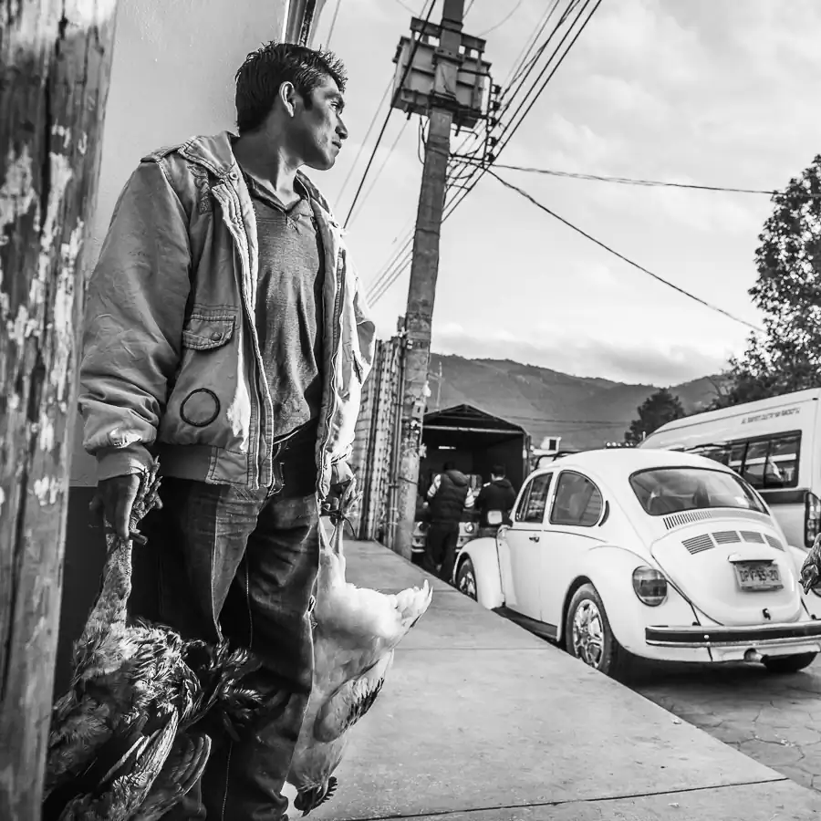 The live chickens hang from their owners’ arms as they patiently wait for potential customers. This body of work captures the various activities and the people’s expressions from a low vantage point that tries to present the perspective of what the hanging chicken see. According to the National Board for the Evaluation of the Social Development Policy (Coneval), the state of Chiapas ranks number one in poverty for the whole Mexico. Almost 3.8 million people live with less than five dollars per day and lack at least one of the basic services of food, health, education, housing or social security.