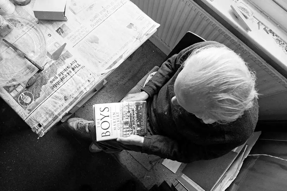 Shmuel still paints and this makes him happy every day. In the first floor of his house he has his own warm studio that is full of things, books and details, which speak about great passion of his. Even his shed in the end of his garden is full of picture frames that he collected through his life. Some of them came from a Stern Pissarro Gallery that he still works in as an accountant being already 84 years old. “You can’t take the creativity from a persons soul neither from his mind. It stays there until you are alive, whatever your story is.” adds Shmuel while going through the book “The Boys” that was written about these 760 children, that were much more lucky than thousands of others.