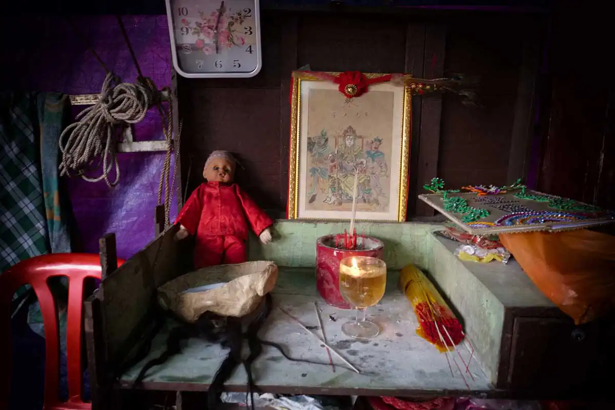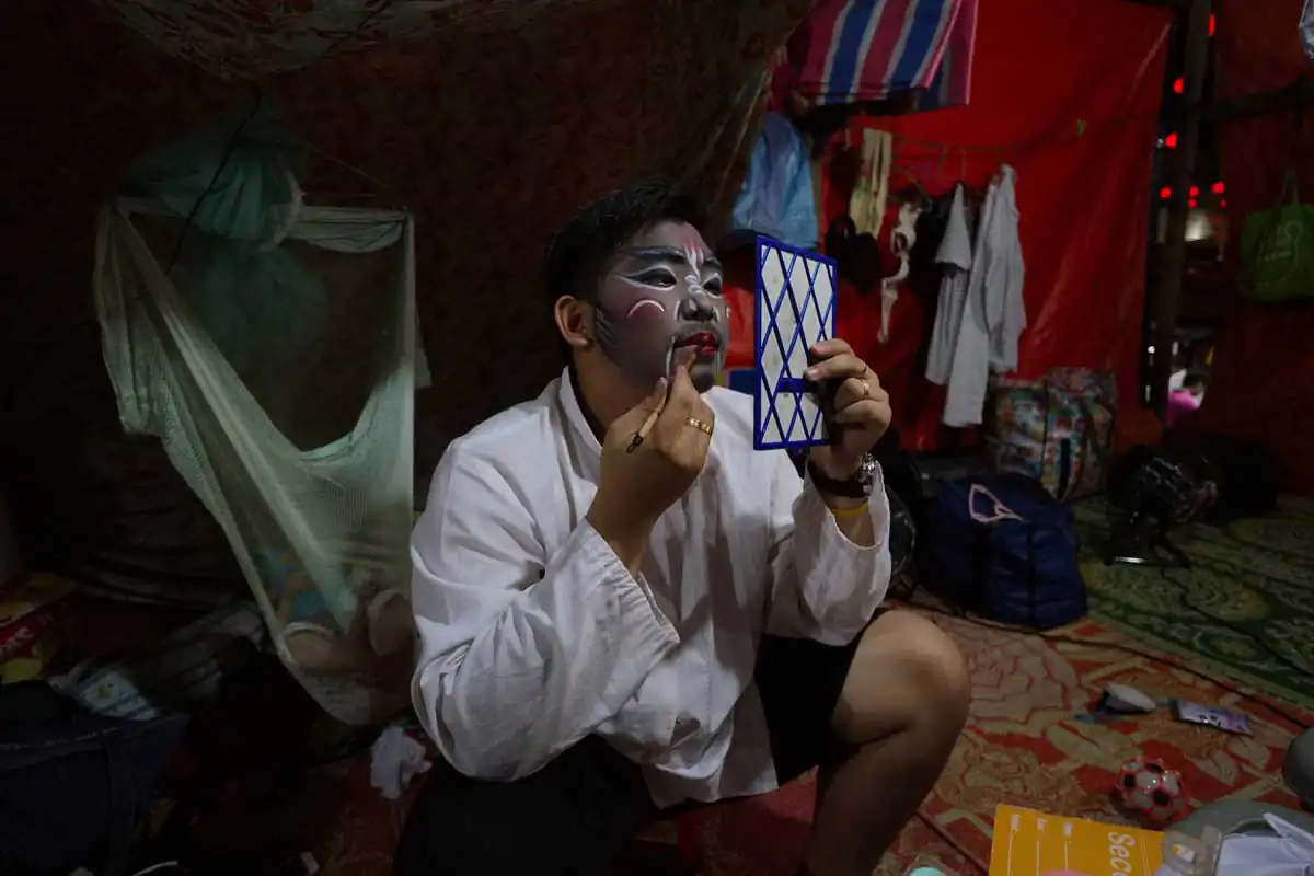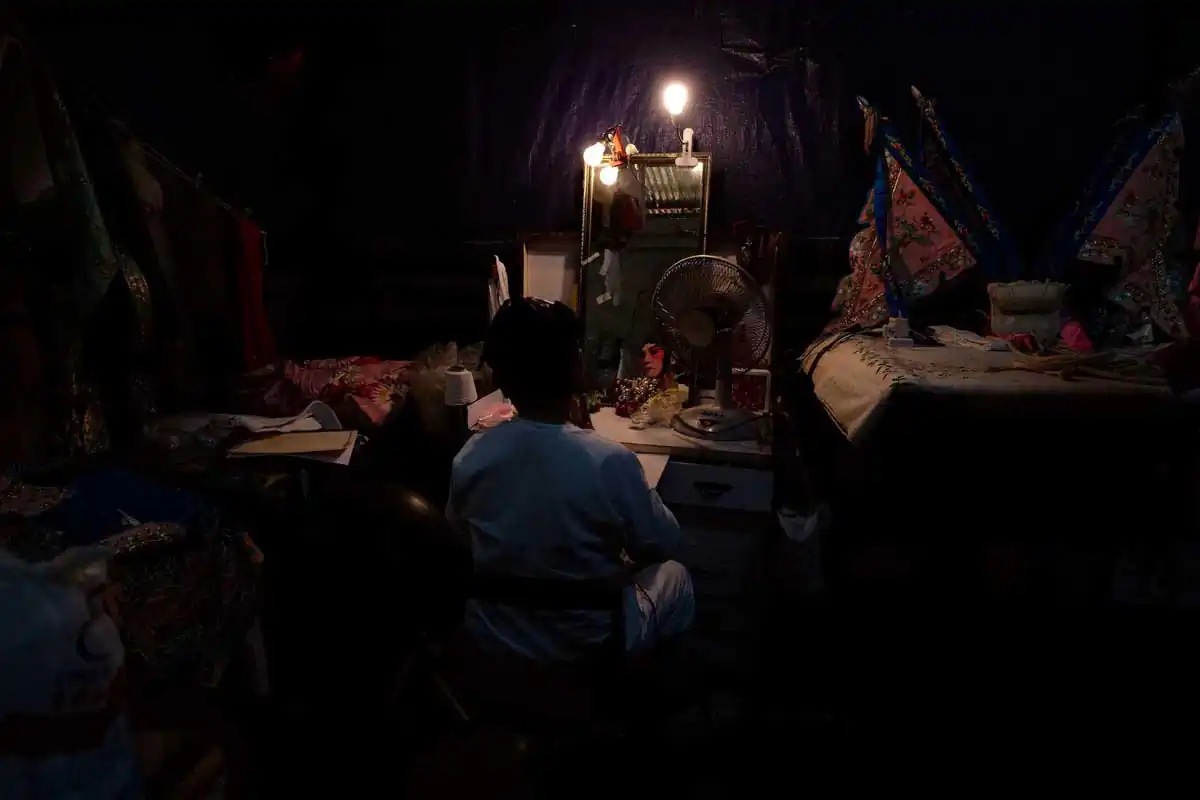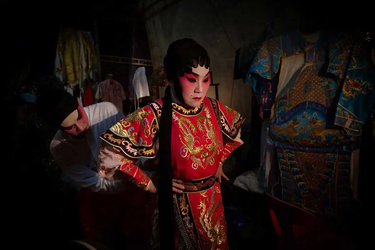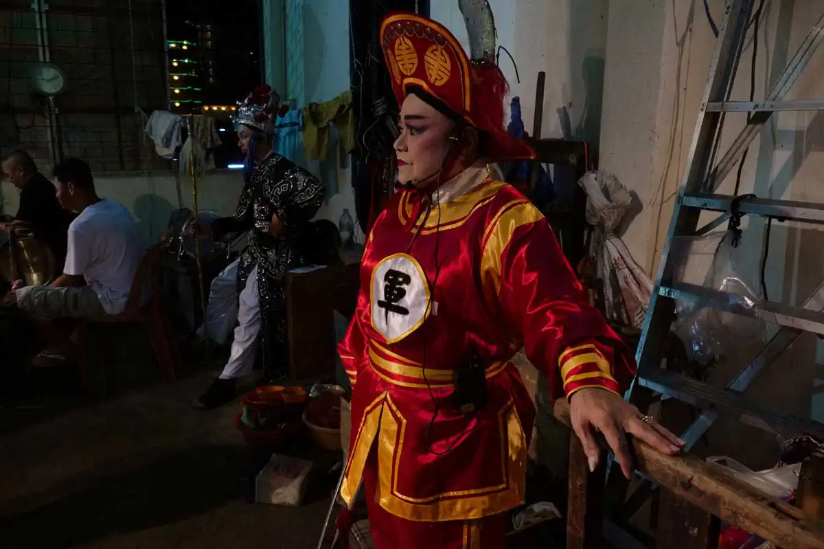 Before and during Chinese religious festivals such as the Hungry Ghosts festival and the Nine Emperor Gods festival, these opera troupes live in the back areas of the stages that are specially erected. Much of the funding comes from business people and/or from temples.I chose to feature photographs made in the backstages. For the most part, the performers willingly accepted my presence despite my getting in their way more than once. I didn’t use artificial lights, and only relied on ambient light to accurately show the backstages as they really are.