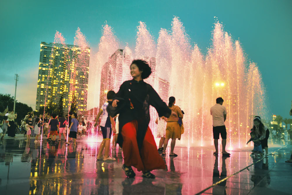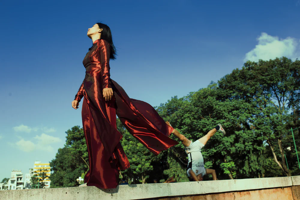 These reactions are shaped not only by the subjects themselves but also by objective environmental factors such as altitude, tree density, temperature, and urban construction density. Both natural and artificial conditions directly affect human life and contribute to the overall energy of a space. The choice of the Ao Dai as the central garment was intentional. It is visually striking while remaining deeply connected to Vietnamese daily life, making it an ideal element for an interactive social experiment.