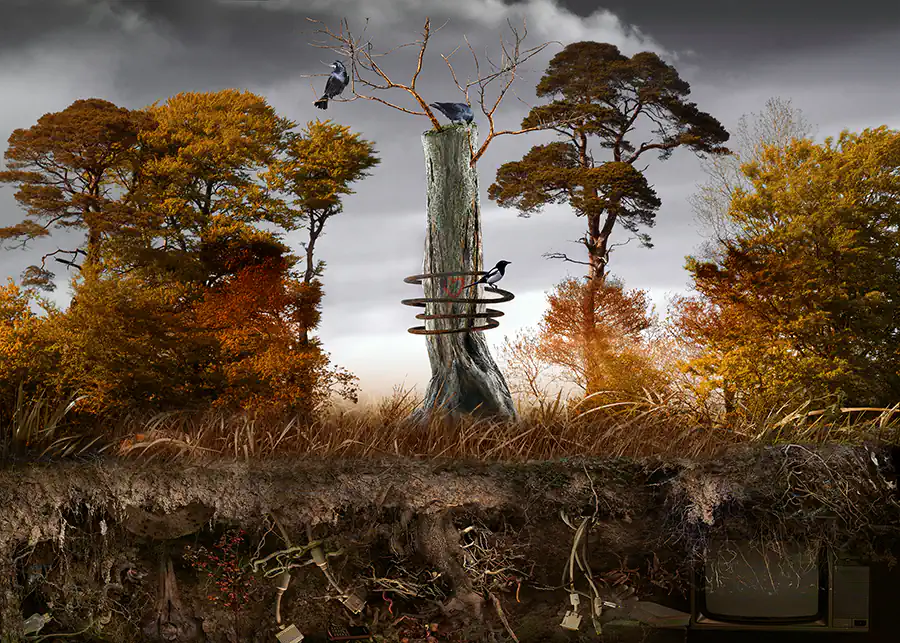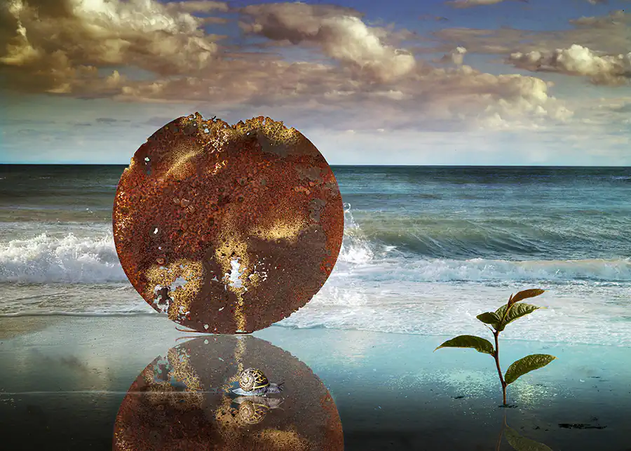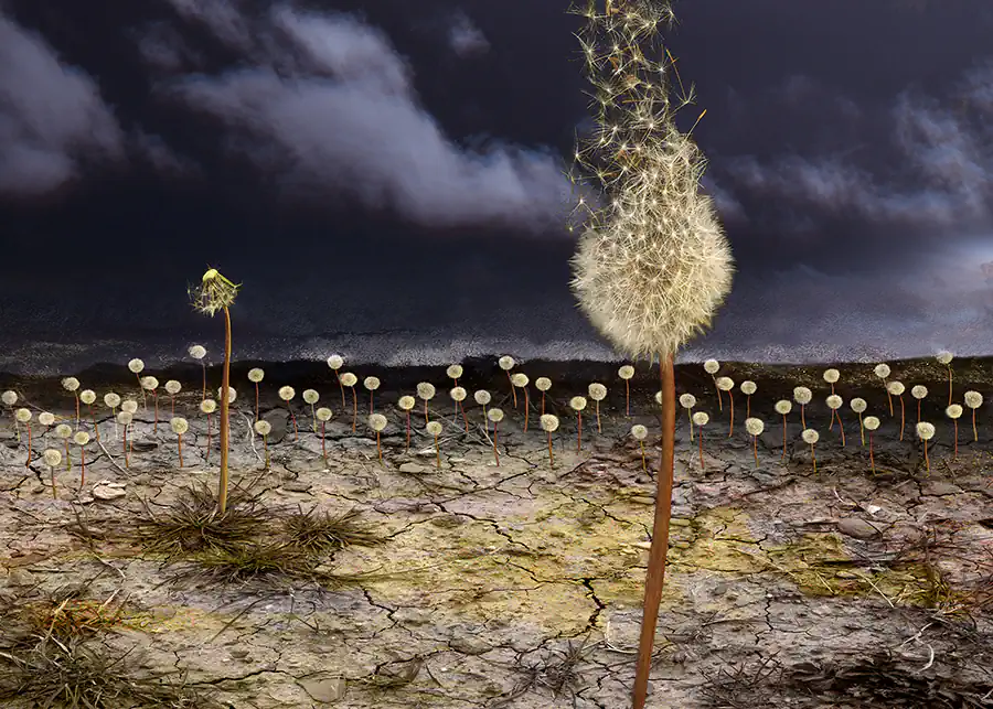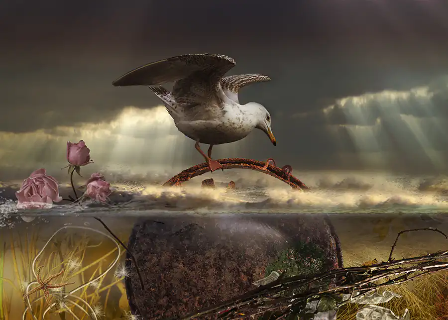 Unfortunately the natural life cycle has become stressed by profligate human activity, resulting in global imbalance and a lack of connection to the Earth. I am attempting to define the world we live in by contrasting aspects of a disintegrating planet with a reverence for the beauty of all living things.