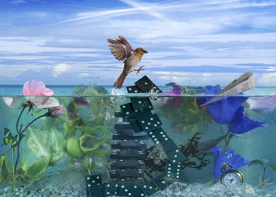 This current work consists of multiple images that employ both traditional and innovative techniques. I am a huge fan of Photoshop, but still believe in the integrity of the image. I work in studio and on location employing skills (predominantly from my days of working with film) that have been fine tuned over the years. I then explore at length the photographic potential, using Photoshop, of creating surreal melded images from several different shots onto one seamlessly constructed print.