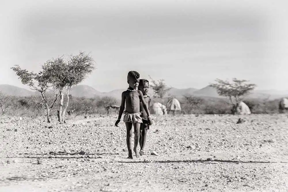 Around 16th century Himba people crossed to Namibia from Angola, settling in Kaokoland (nowadays Kunene) as part of Herero tribe. Few centuries later, bovine epidemic swiped through Namibia, causing Herero a great loss in cattle. Facing great crisis, the tribe decided to move south, exploring different regions in order to enhance their chance of survival. Still, despite famine and hunger, some members decided to stay and struggle for survival in familiar territories, asking other tribes for help in searching for cattle or crops. Â Impoverished by disease amd Nama cattle raiders, Himba were left without live-stock, forced to rely on land for their survival. Driven by hunger, many Himba fled to Angola, where they were called Ova-himba, meaning ‘beggars’ in Otjiherero language.