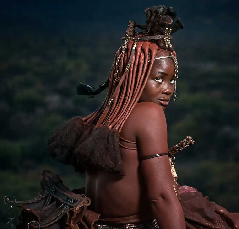 The first beauty task is to take care of their dreadlocks, then women cover themselves completely with otjize, which acts as a sunscreen and insect repellent. The red colour is considered a sign of beauty, and otjize is smeared all over, including not only on their skin and hair but also their clothes and jewellery.