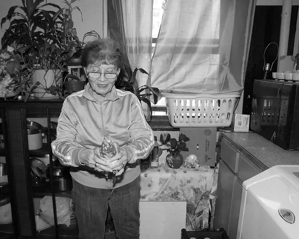I mainly like to record people in their homes and places of worship. I give each person a copy of their picture. When I started this project, I worked with film and would come on Saturday morning with a group of pictures and people would line up at the basketball court on 24 th street to see if I had their photo. Many times, a mother or a sister would say that’s my brother or my grandma and I would give them the picture. The projects are like one enormous family. Everyone knows everyone else. Even though I now work with digital I still make photos to give out . My greatest thrill is to go to someone’s apartment and see my photos hanging on the wall
