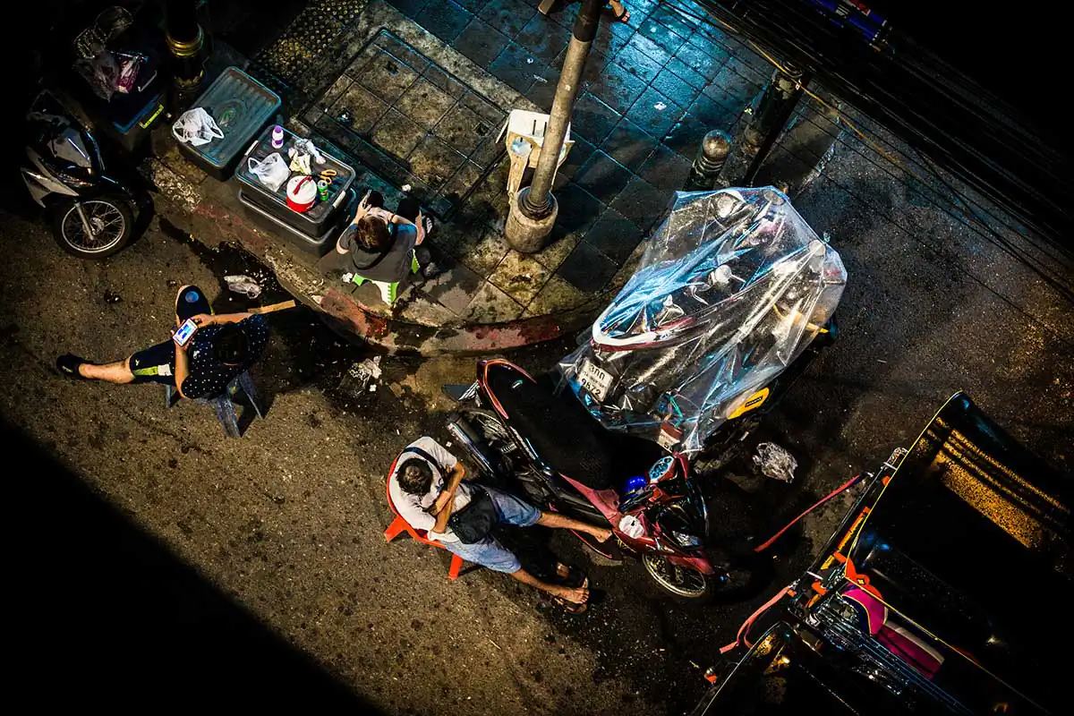 The majority of this collection of shots was born wandering at night along the Sukhumvit Rd., that is more than just a simple road, it is a long human story of kilometers, a “human zoo” in a dystopian atmosphere that reminds me to the mood of Blade Runner movie.