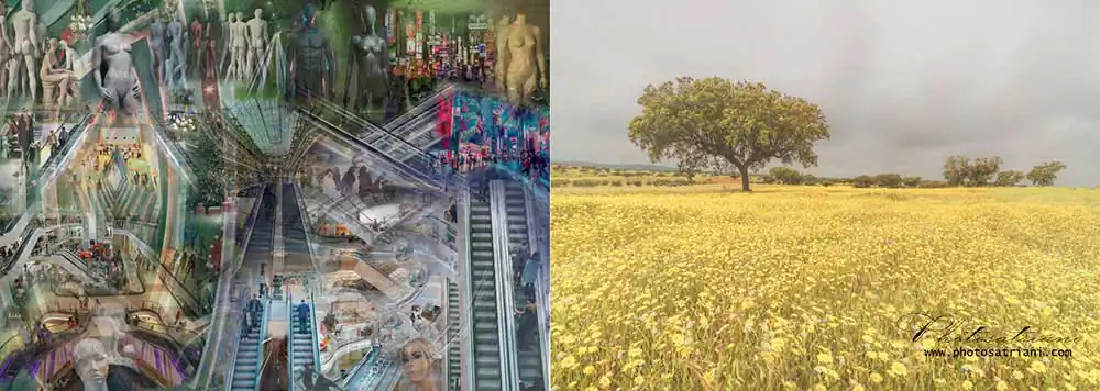 In this book I visually contrast the chaos associated with some of the biggest social problems of our time and our “western” world, with the cosmos of natural landscapes in which calm and silence predominate.