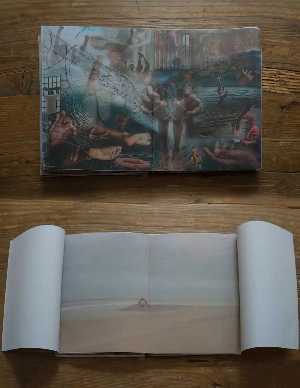 Currently the book (16.5×23.5cm) is finished and I have some very handmade mock-ups that I would be happy to send to a publisher to assess the opportunity to publish it. All the Cosmos images are made by me; the Chaos images are digital collages made by me by using Unspalsh images.