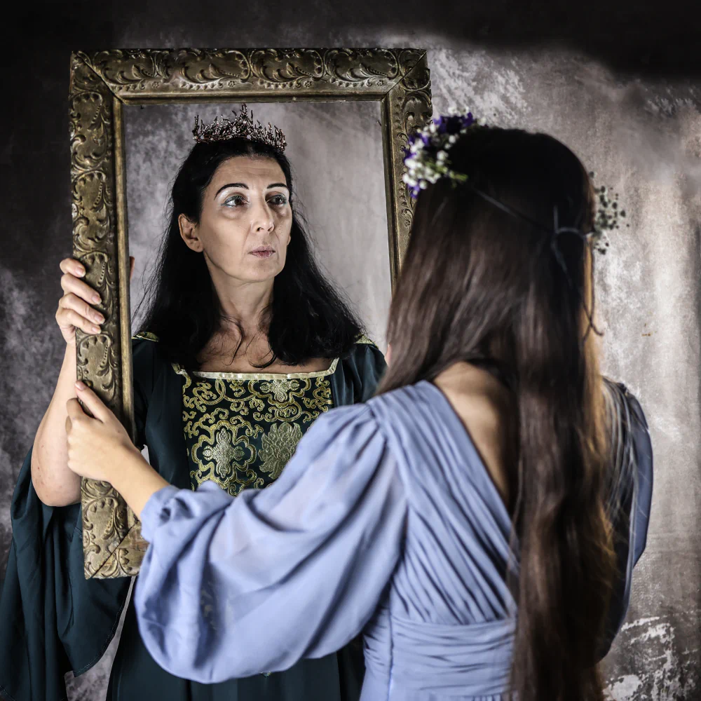 Within the story, he encounters a portrait of his deceased wife as well as her younger self, who glimpses the tragic future that awaits her. This moment introduces a layered perception of time, where past, present, and future exist simultaneously. The younger version of the queen represents innocence and possibility, while her future self reflects the cost of power. Their silent interaction becomes one of the emotional cores of the project.